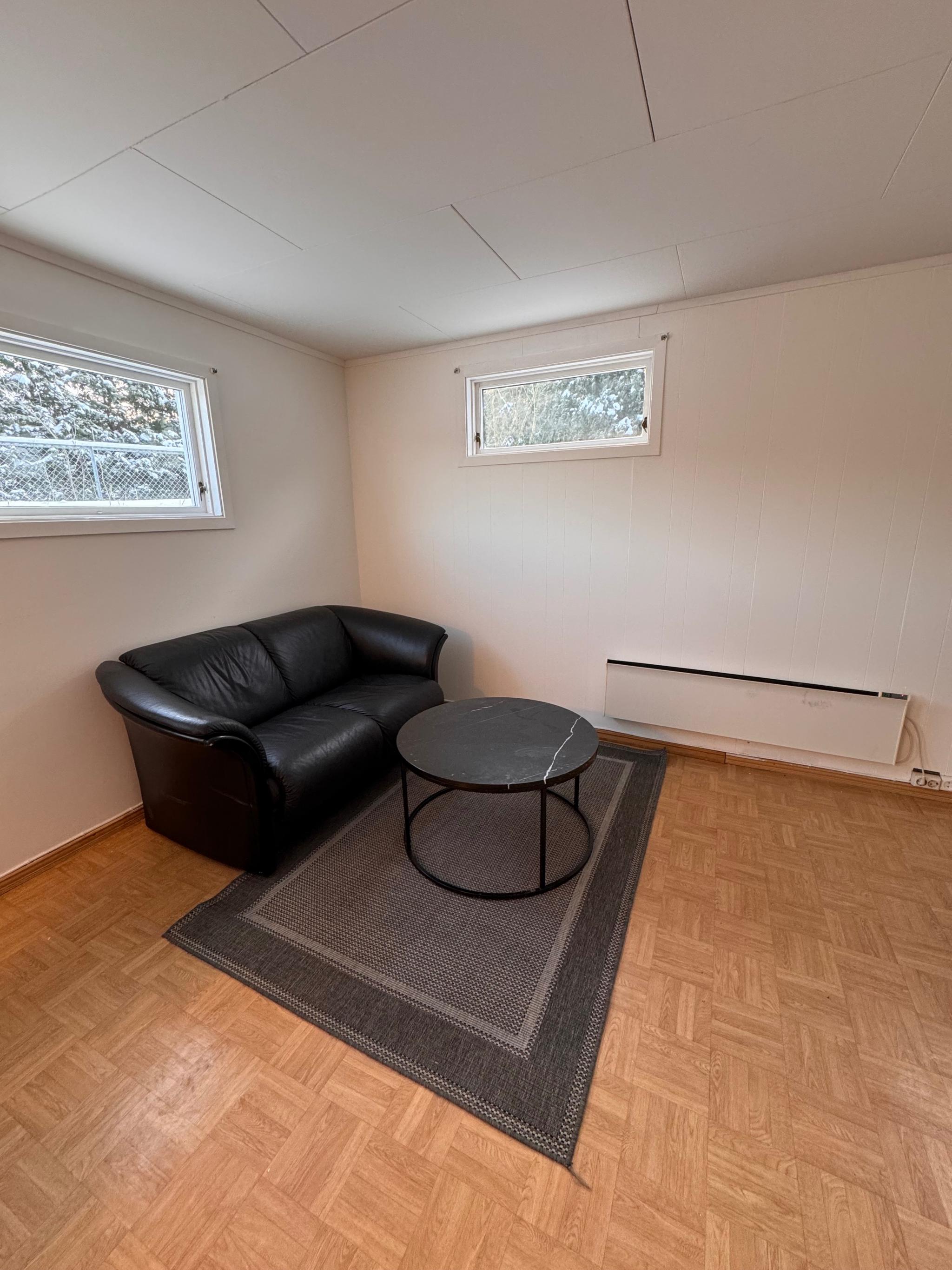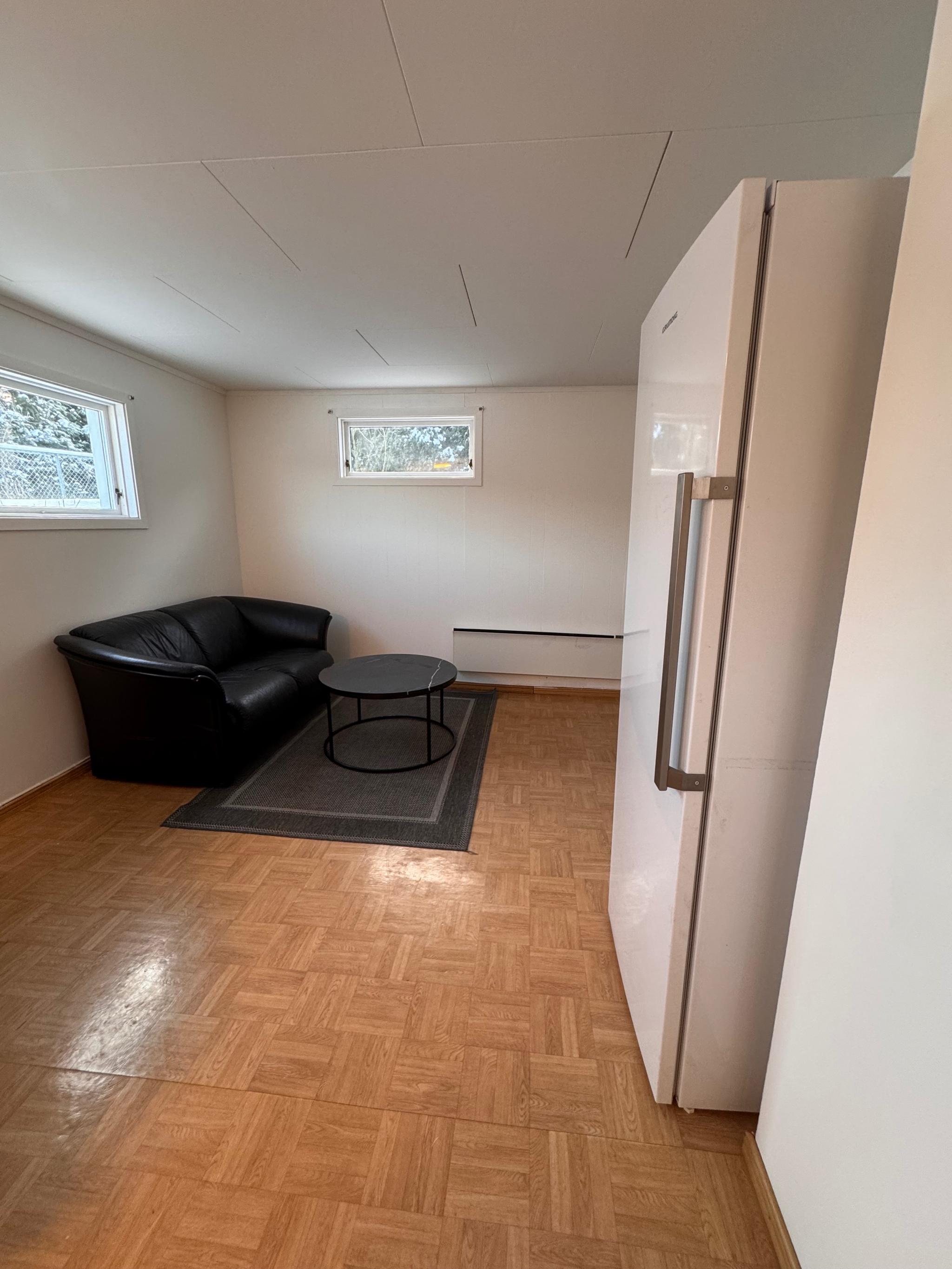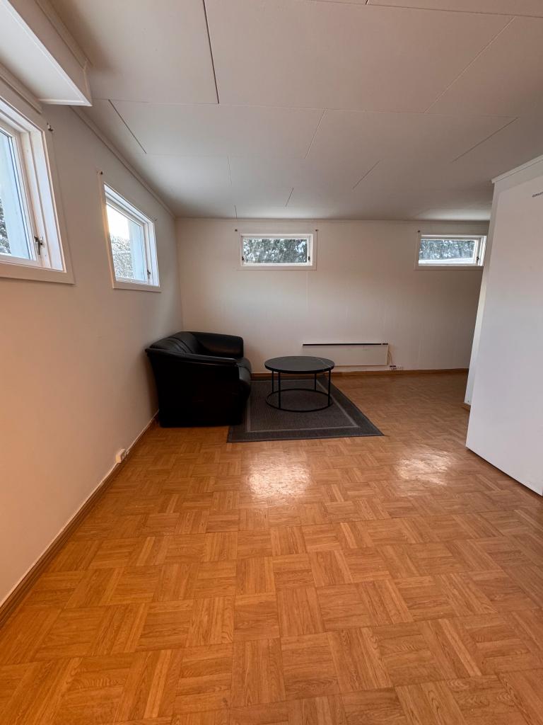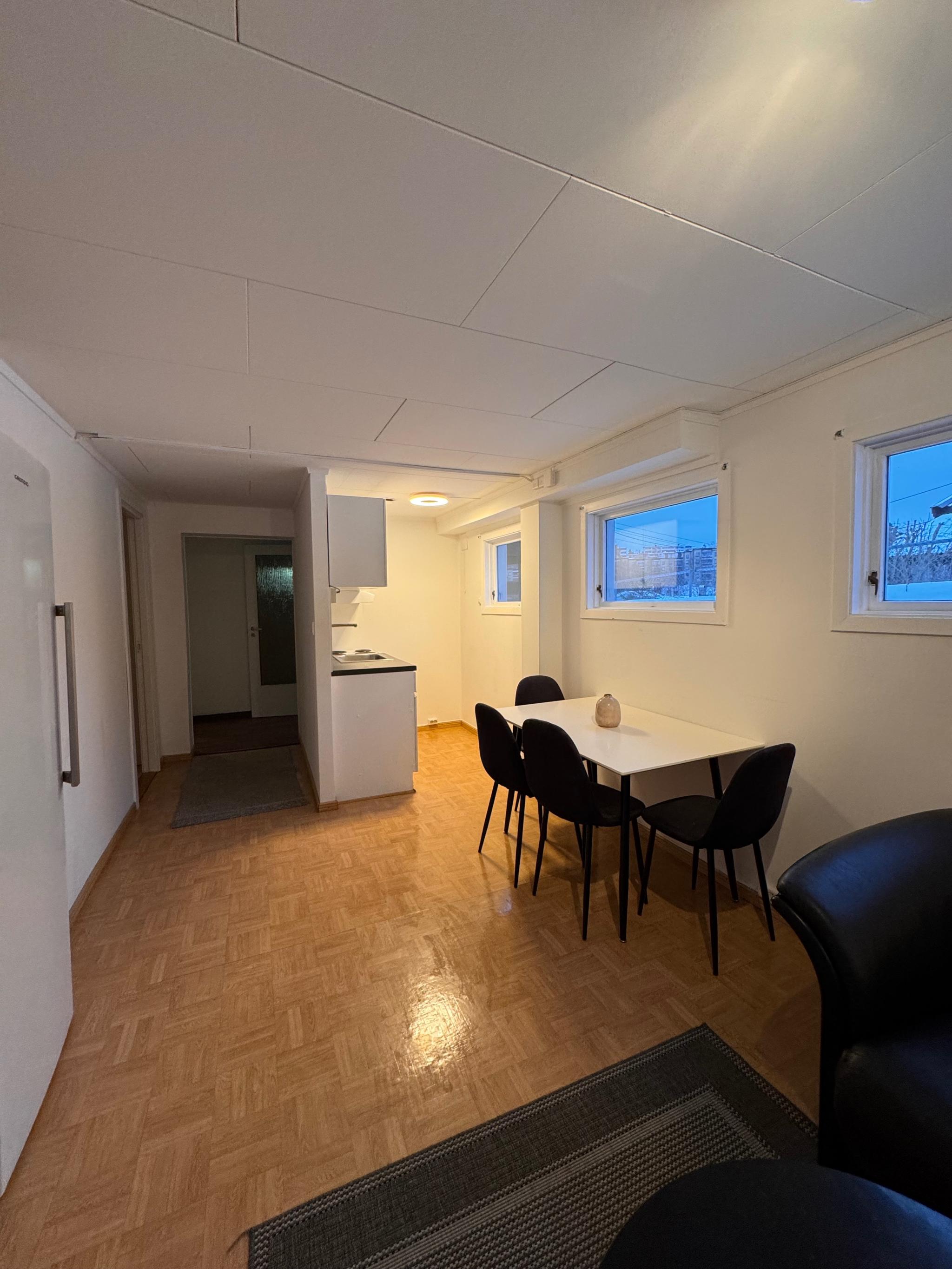 Hybel på ca. 41 kvadratmeter, moderne, lys og delvis møblert. Den har egen privat inngang, stue/kjøkkenløsning og et praktisk bad.