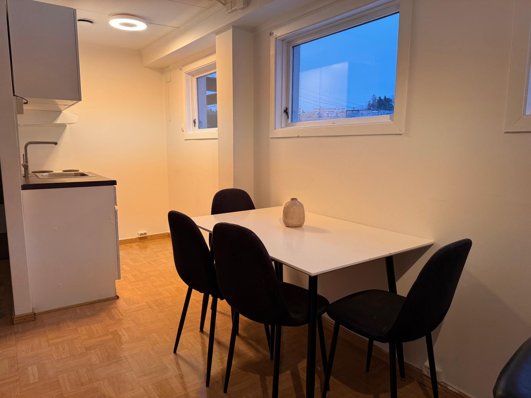 Inkluderer: Strøm, Varmtvann, Internett, Hvitevare(kjøleskap,komfyr,vaskemaskin)