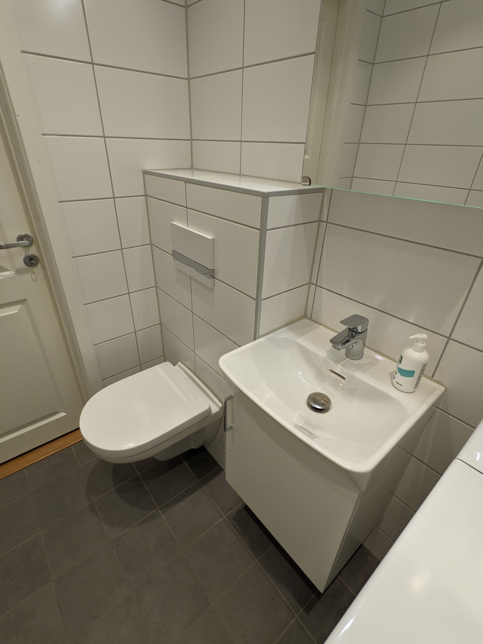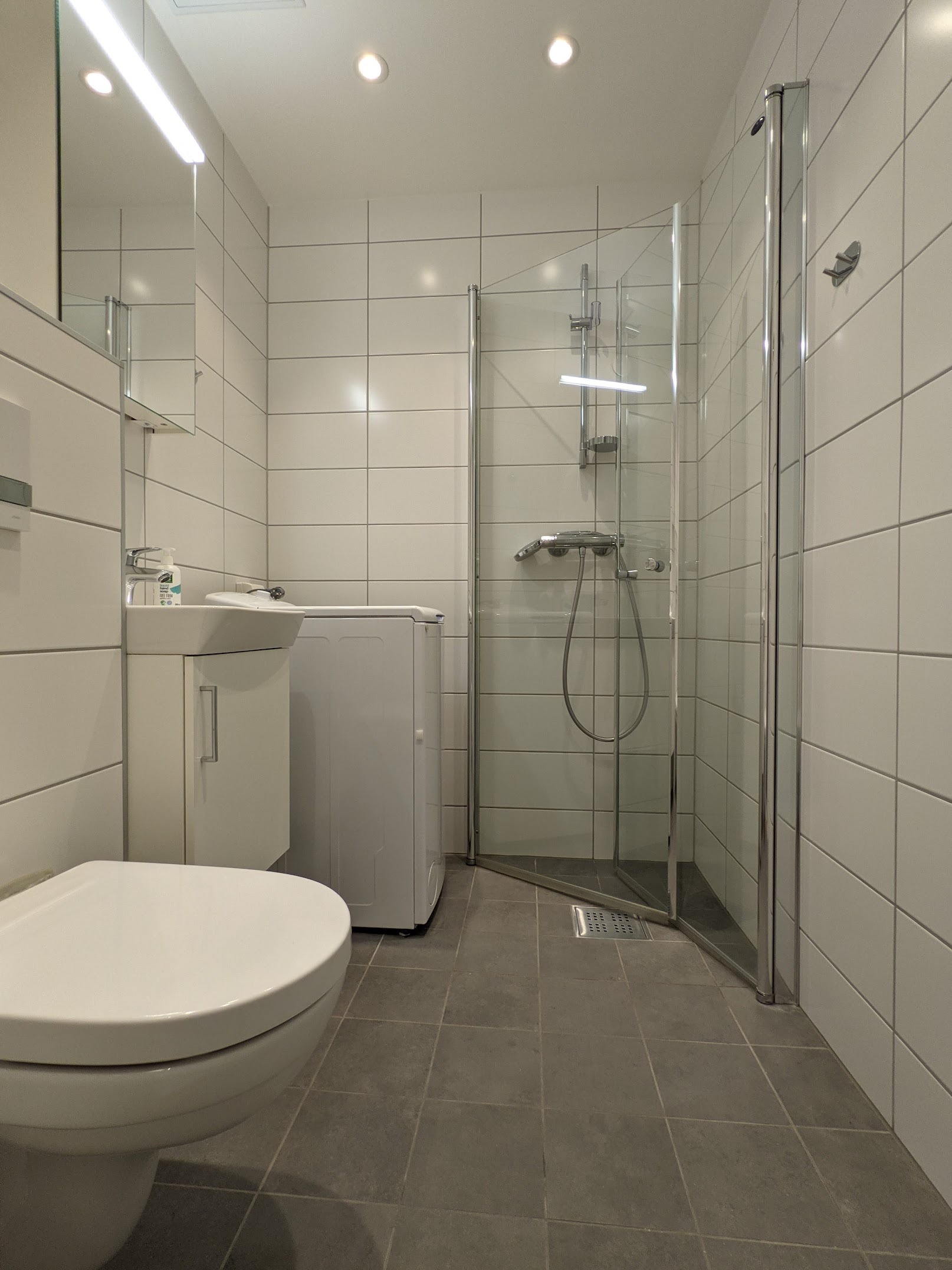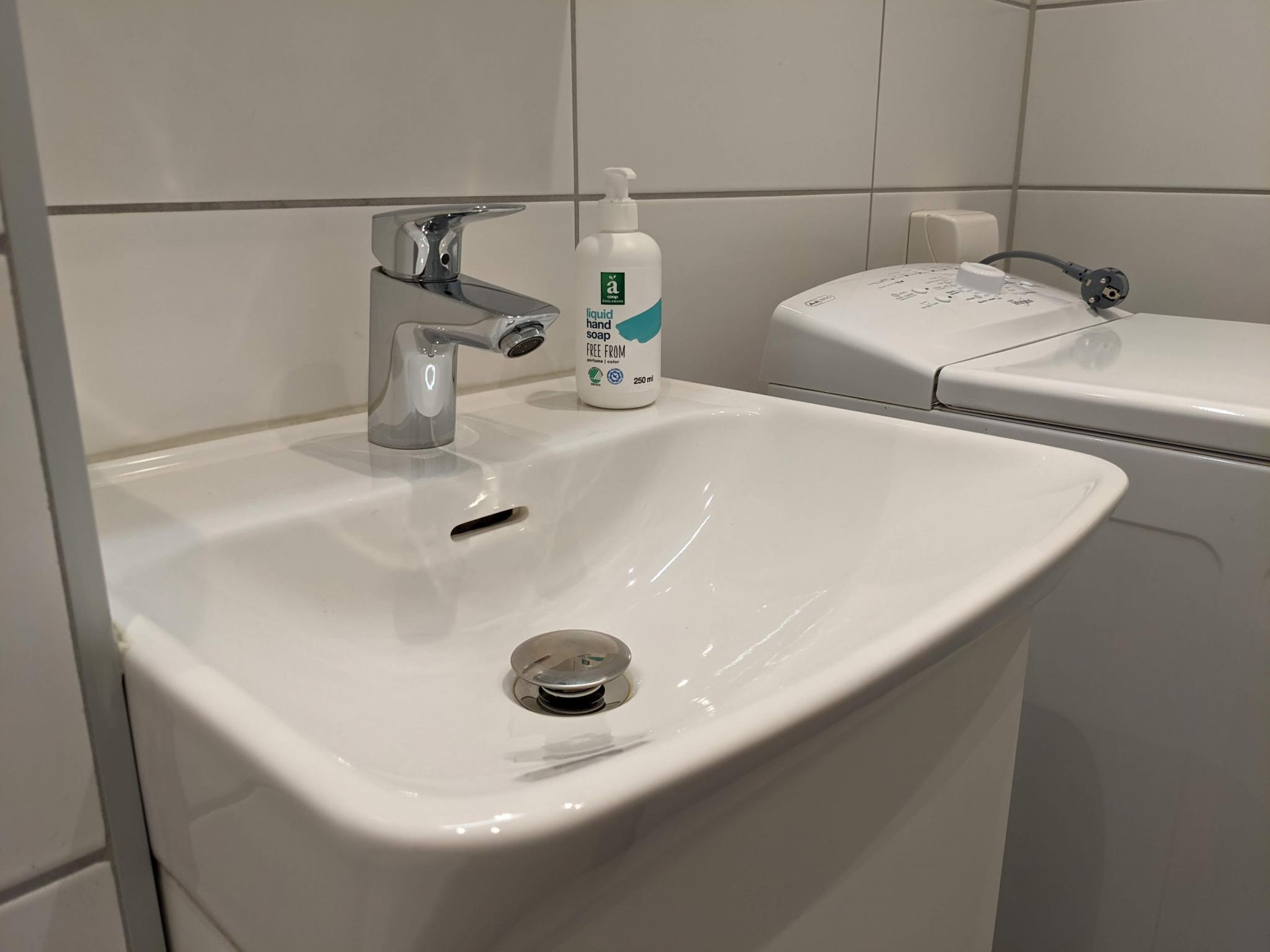 Bad med fliser m/varme. Bad er fra 2018 og inneholder vaskemaskin.