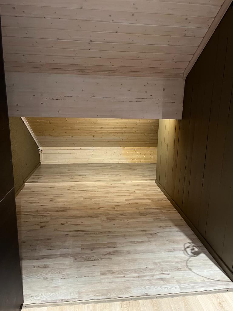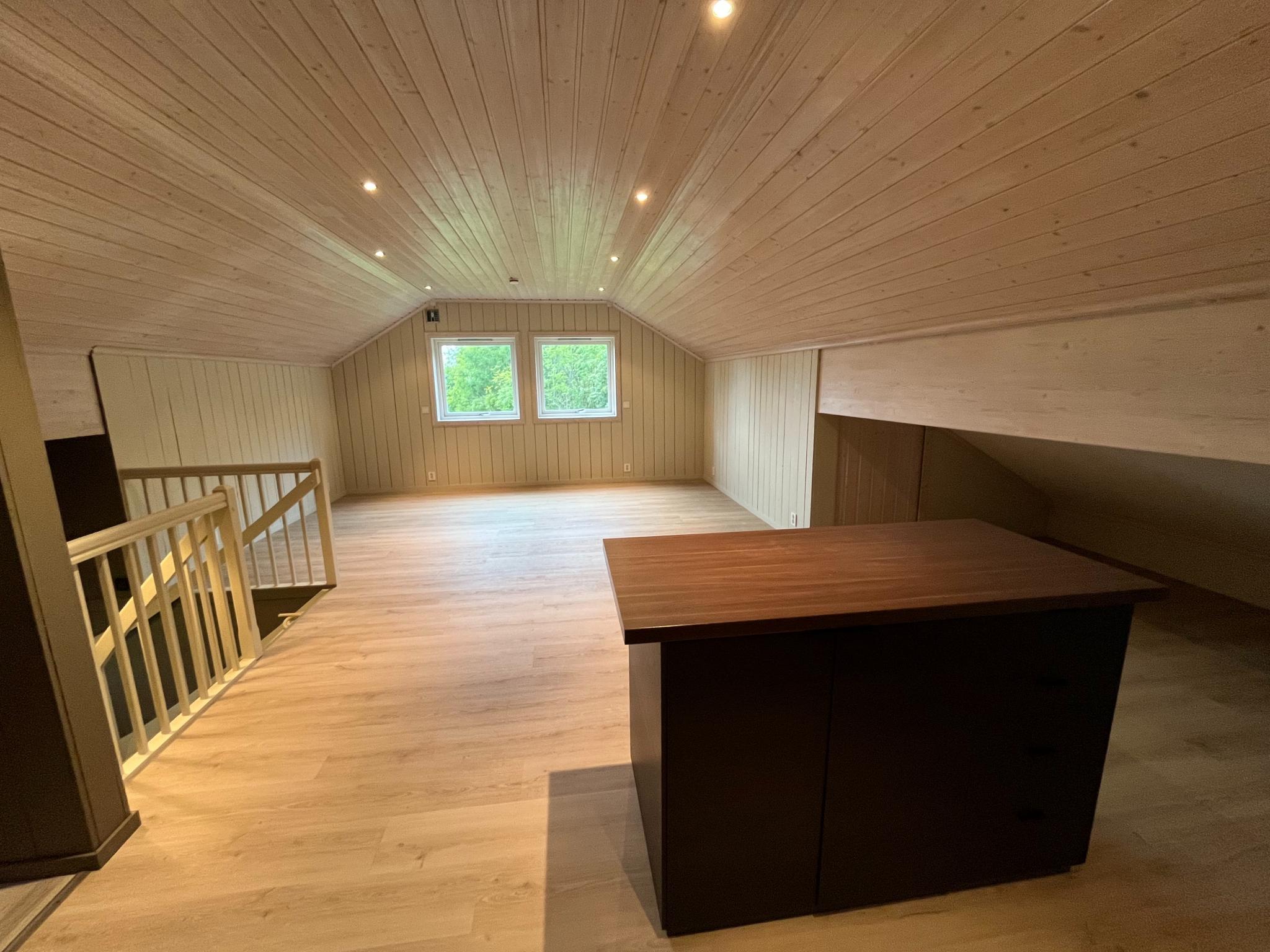 Stor åpen kjøkken- og stueløsning, samt alkove. Ett lite og ett stort soverom. Bad med opplegg for vaskemaskin. I tillegg 24 m2 lagringsplass under skråtak gir samlet gulvareal 99 m2.