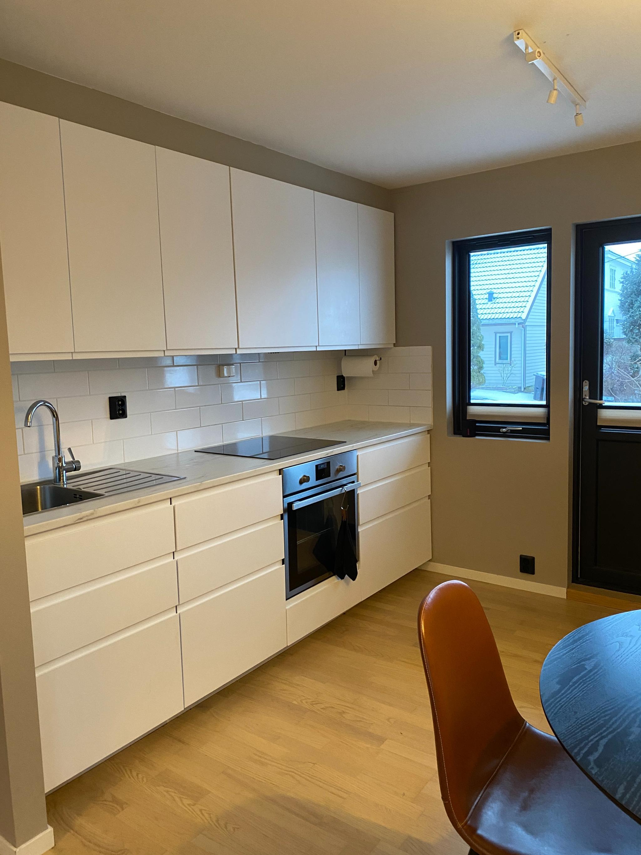 Inkluderer: tv (48tommer om ønskelig), tv-benk, stuebord, sofa (annen en på bilder), spisebord (ink stoler), kjøkken redskap, seng, bord og stoler til terrasse, internett, lagrings plass. Oppstartsdato kan avtales.