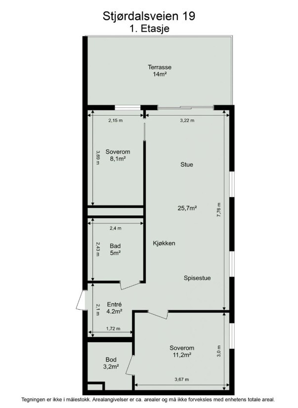 - 2 romslige soverom oppmålt til 8,1 kvm og 11,2 kvm