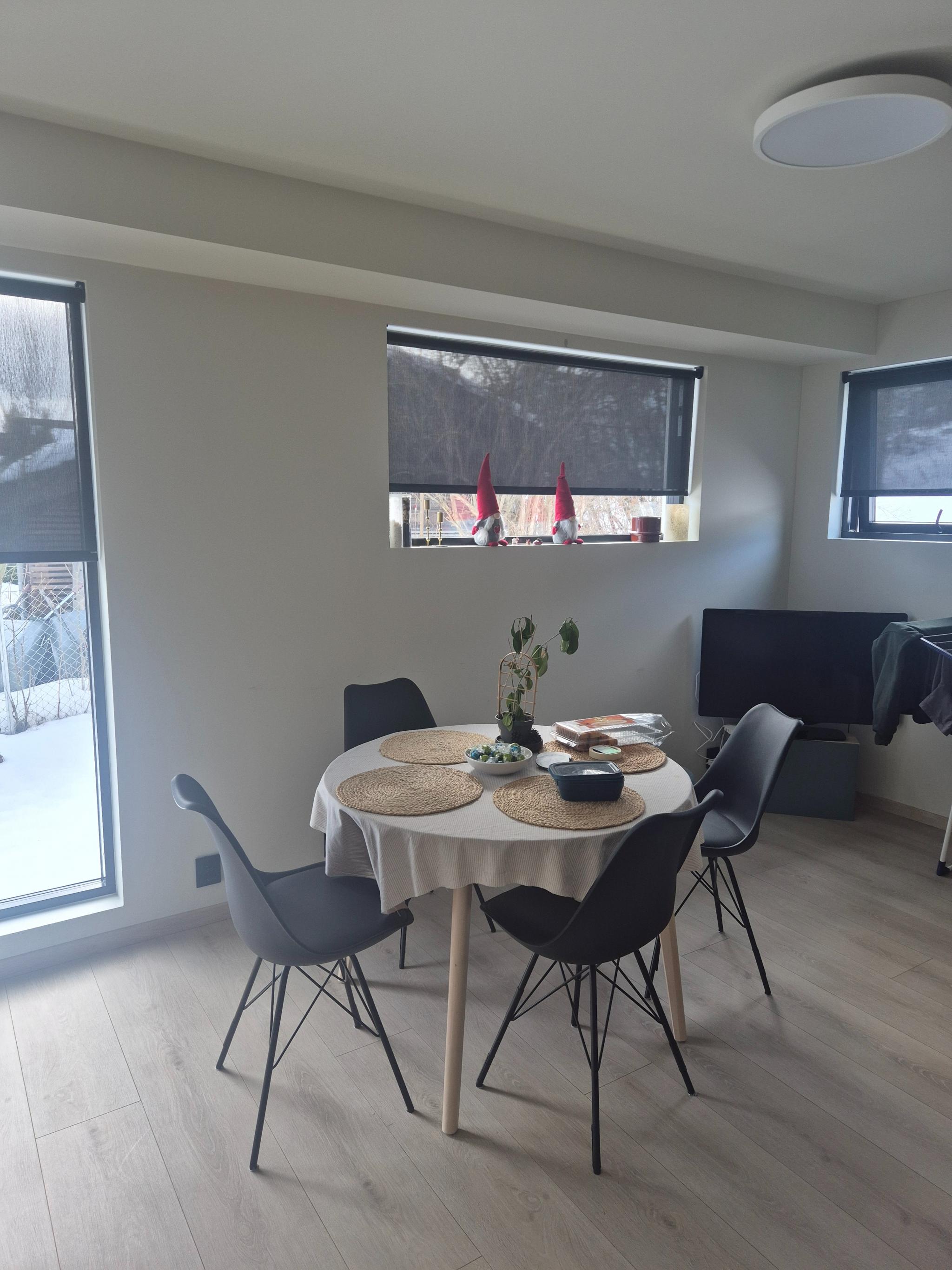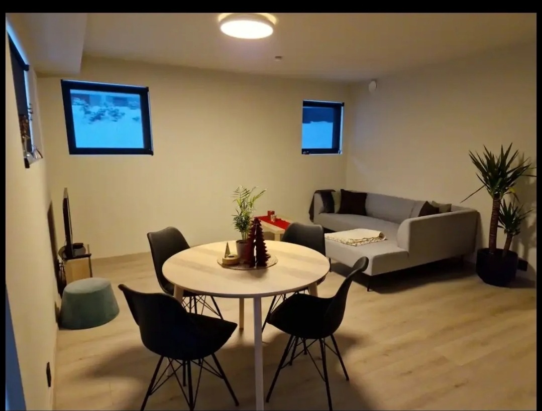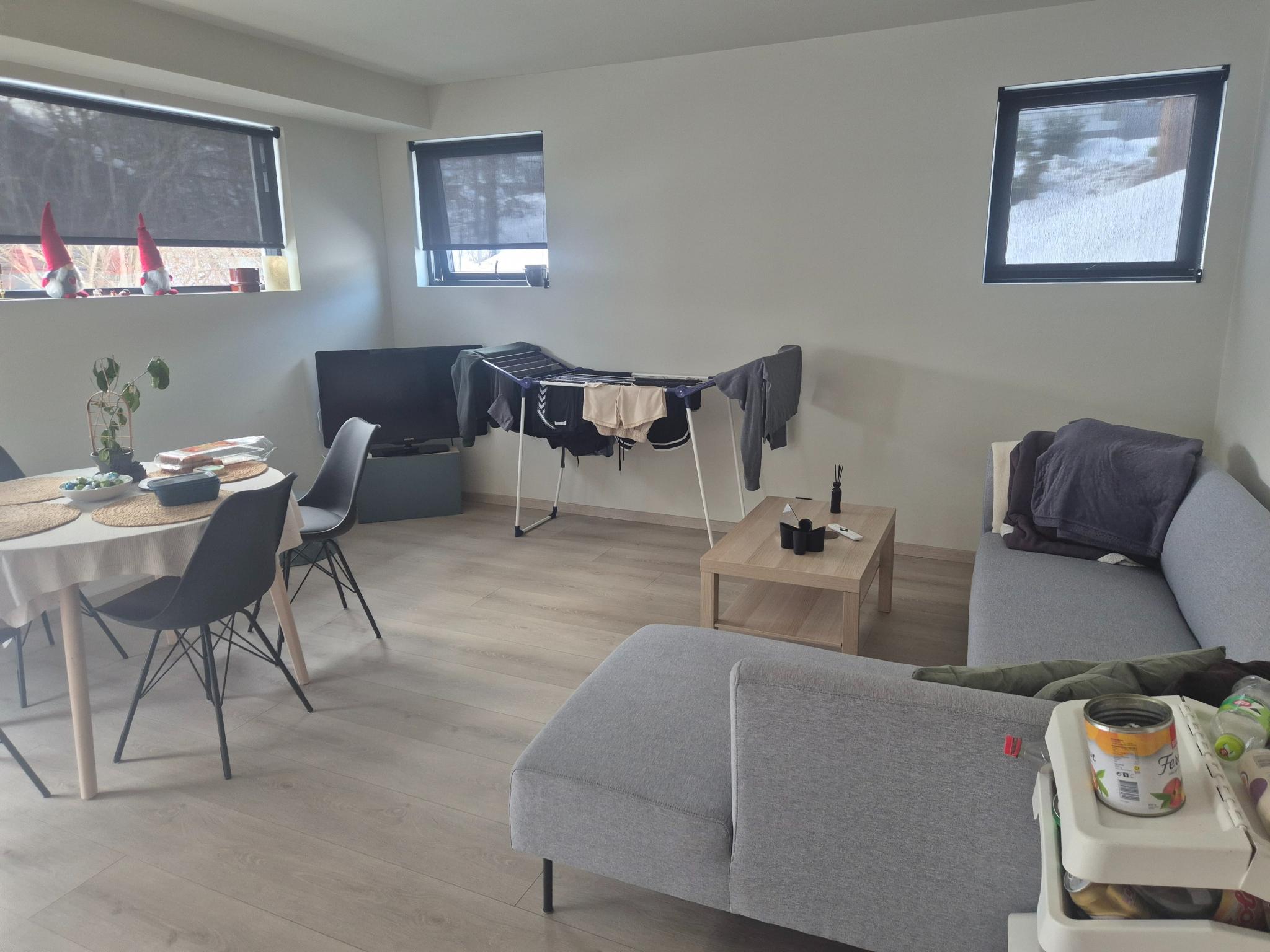 Moderne hybelleilighet med god standard. Leiligheten er i 1 etasje med mange store vinduer og mye lys inn.