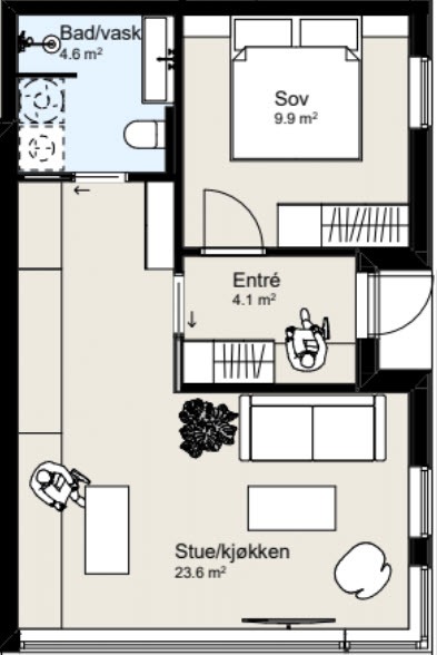 Leiligheten passer for enslig eller par. Vi ønsker rolige leietakere.