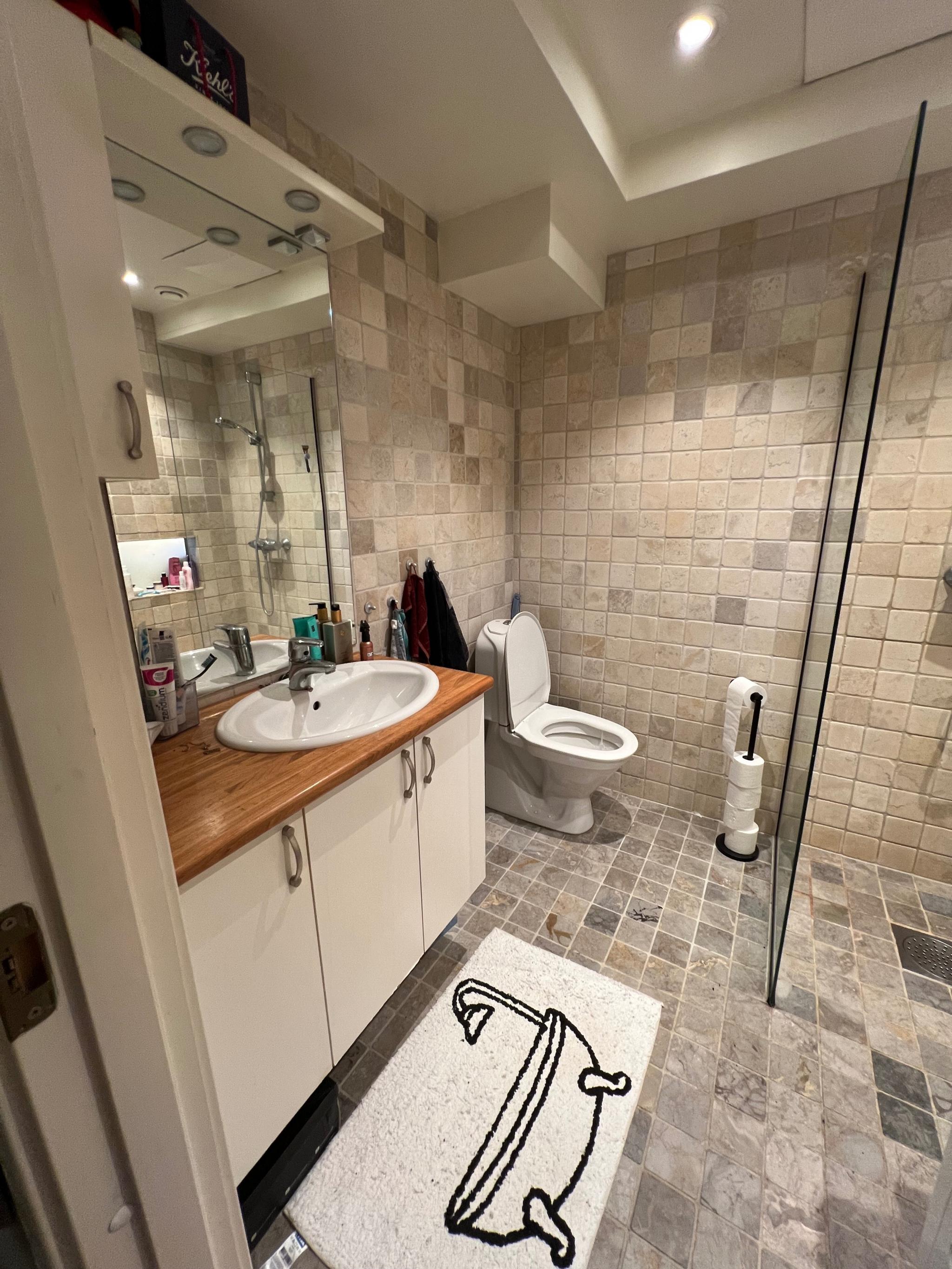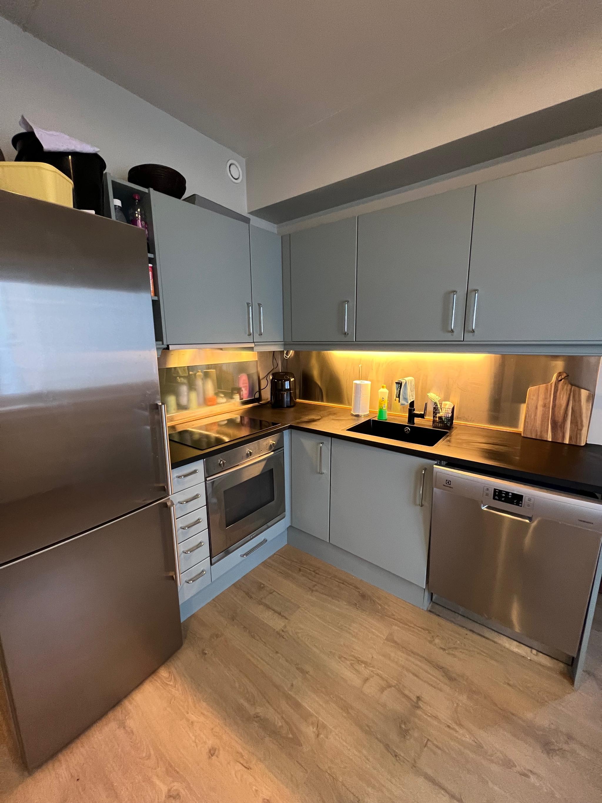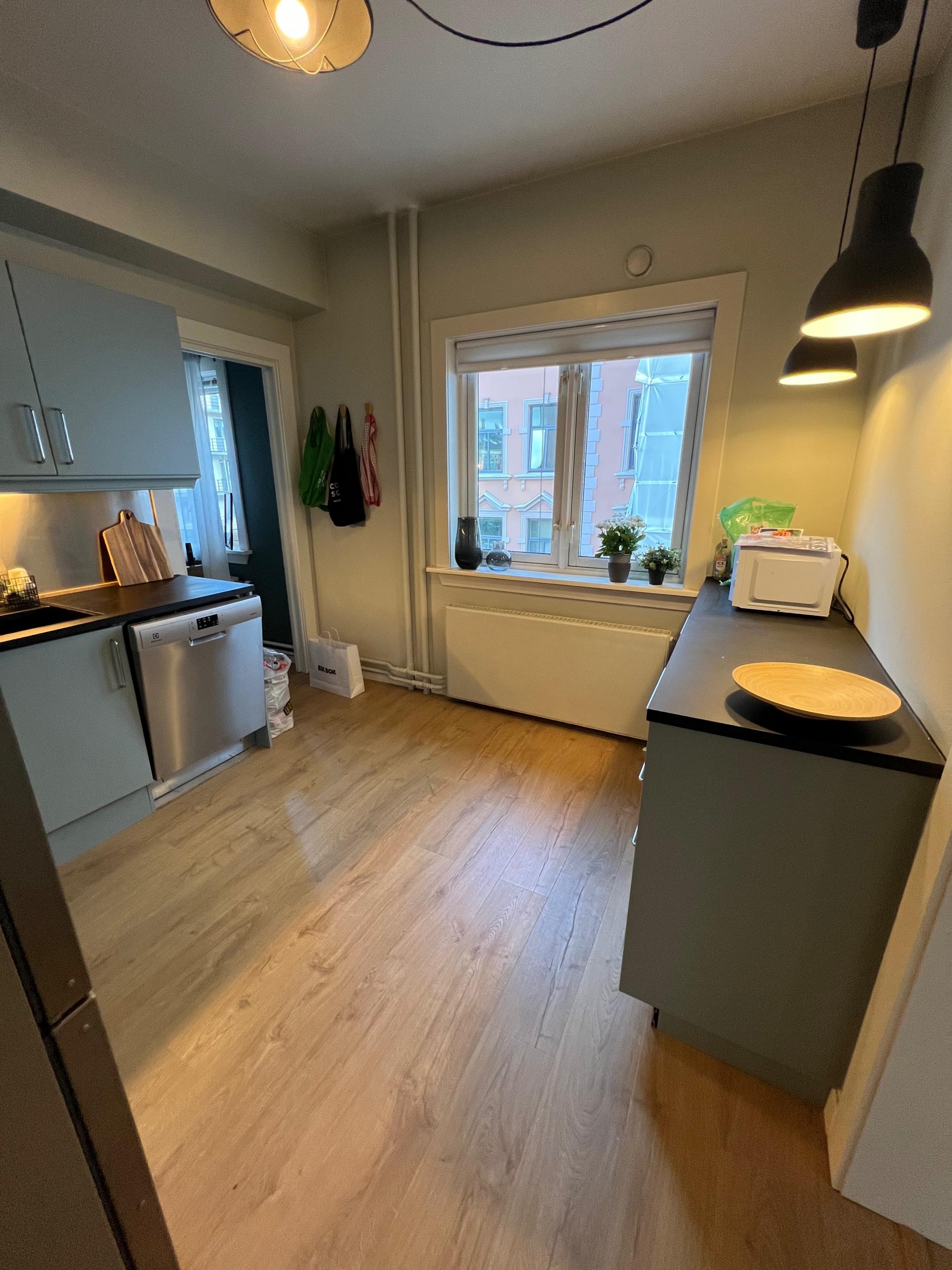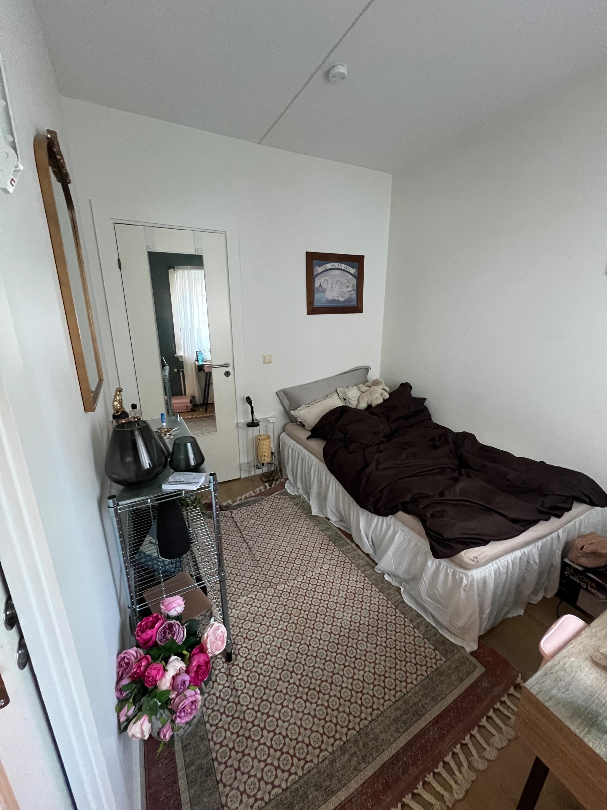 Leiligheten er i utgangspunktet umøblert, så møblene + vaskemaskin her har jeg kjøpt. Soverommet som blir ledig har leilighetens tilhørende bod, dette kan brukes som walk in-closet om man ønsker (kofferter osv oppbevares også her). Soverommet er også umøblert.