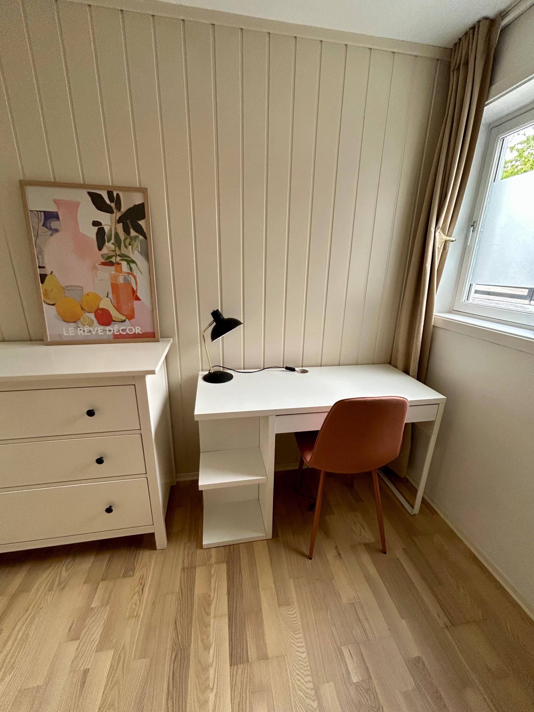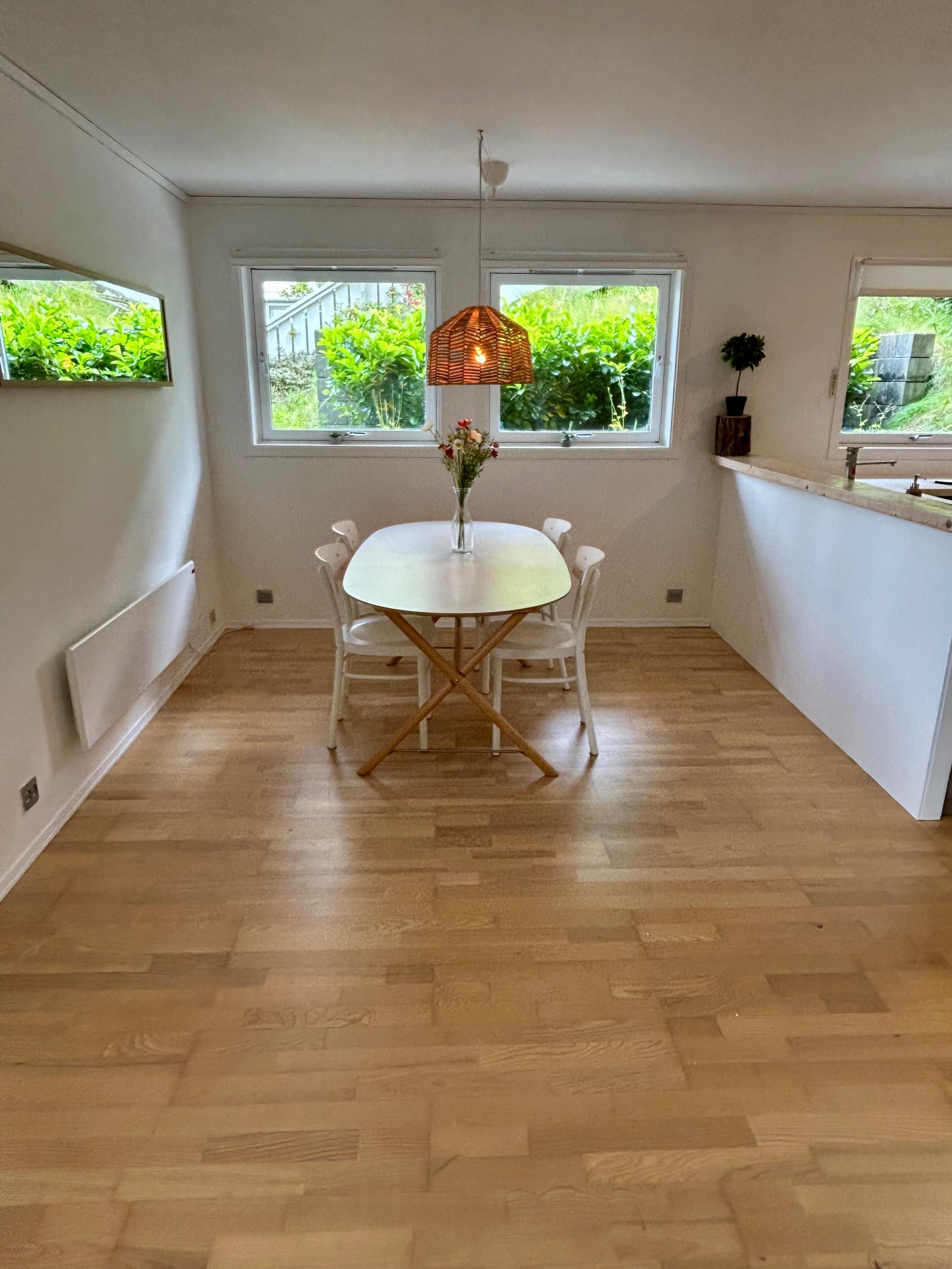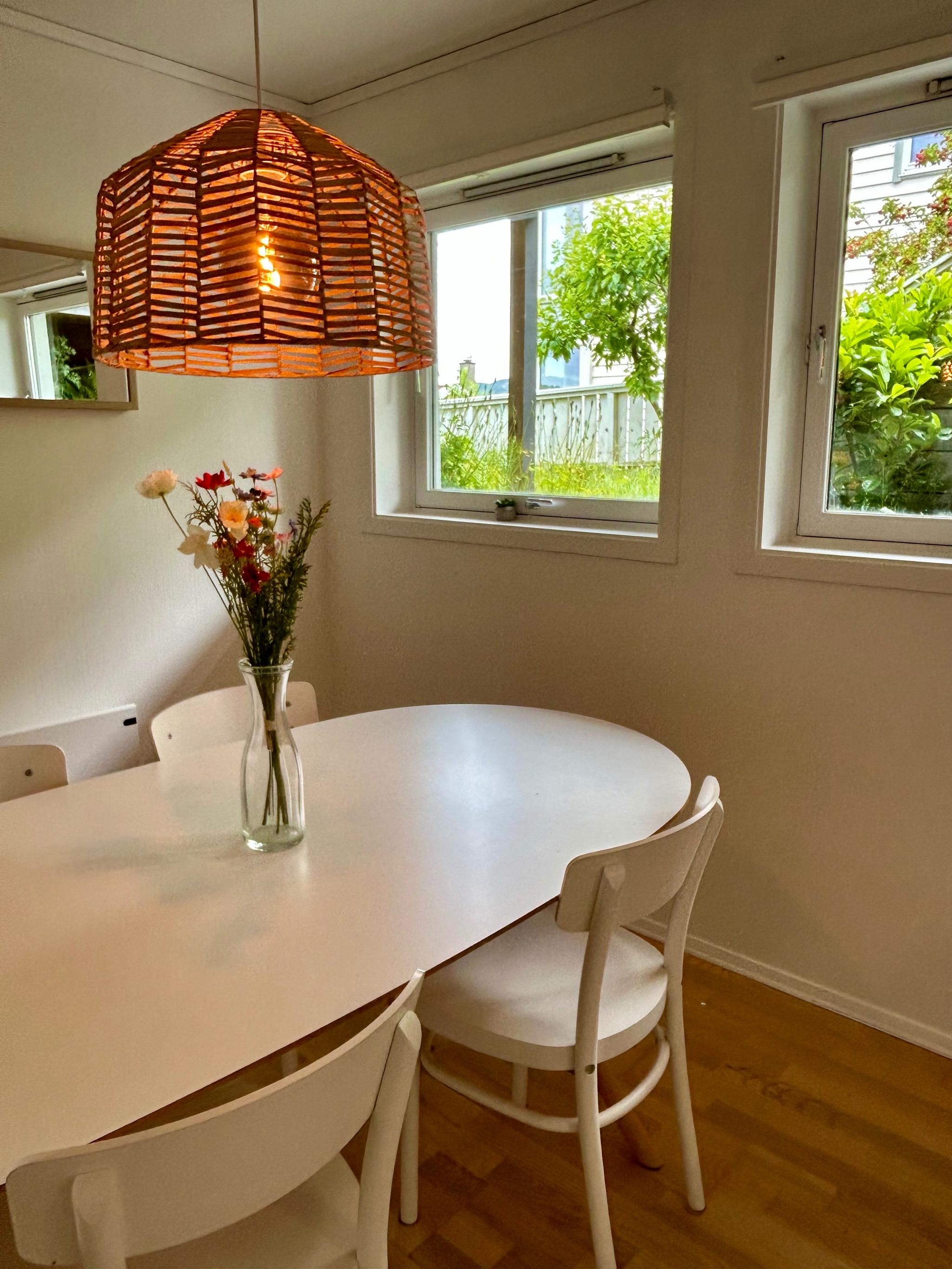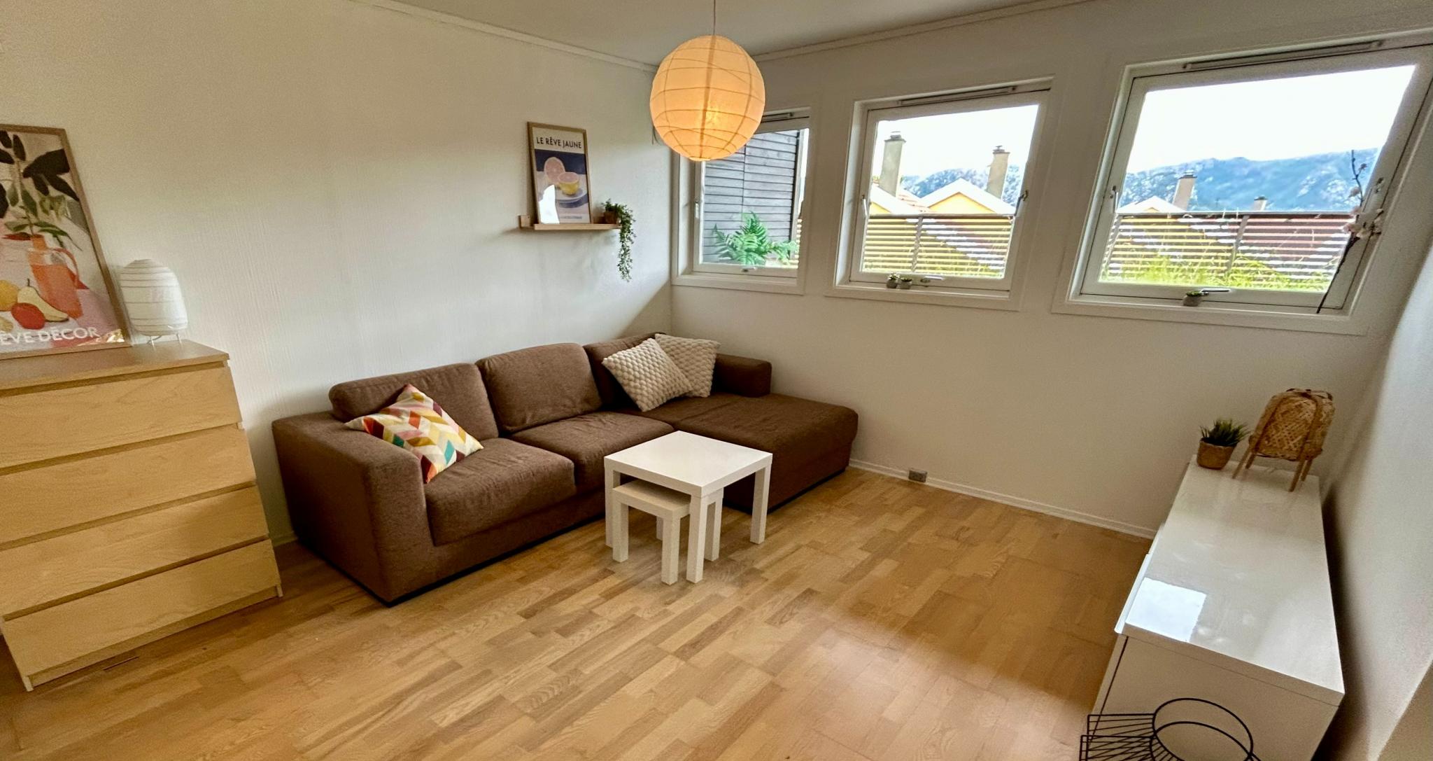 Vi leier ut en lys og moderne leilighet med høy takhøyde på 64 kvm med 2 soverom fra 01.07.2025, perfekt for to venninner som ønsker en hyggelig plass å bo.