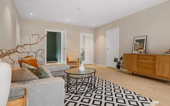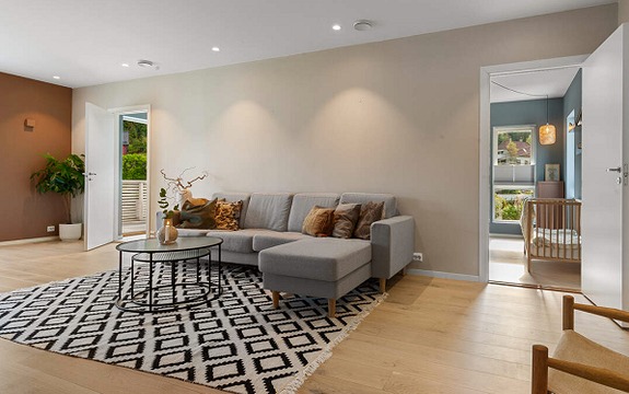 En lys og fin fire roms leilighet fra 2017 med balkong i rolige omgivelser