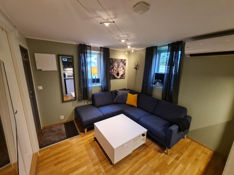 En praktisk og møblert hybel/leilighet på 20 kvm i Seljestadveien 46, Harstad, er tilgjengelig for leie fra 1. Desember 2025.