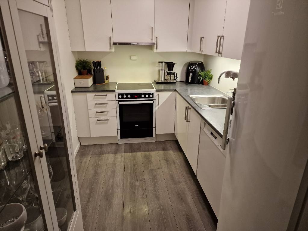 Strøm, internett og TV er inkludert i leien. Leiligheten er utstyrt med hvitevarer og vaskemaskin.