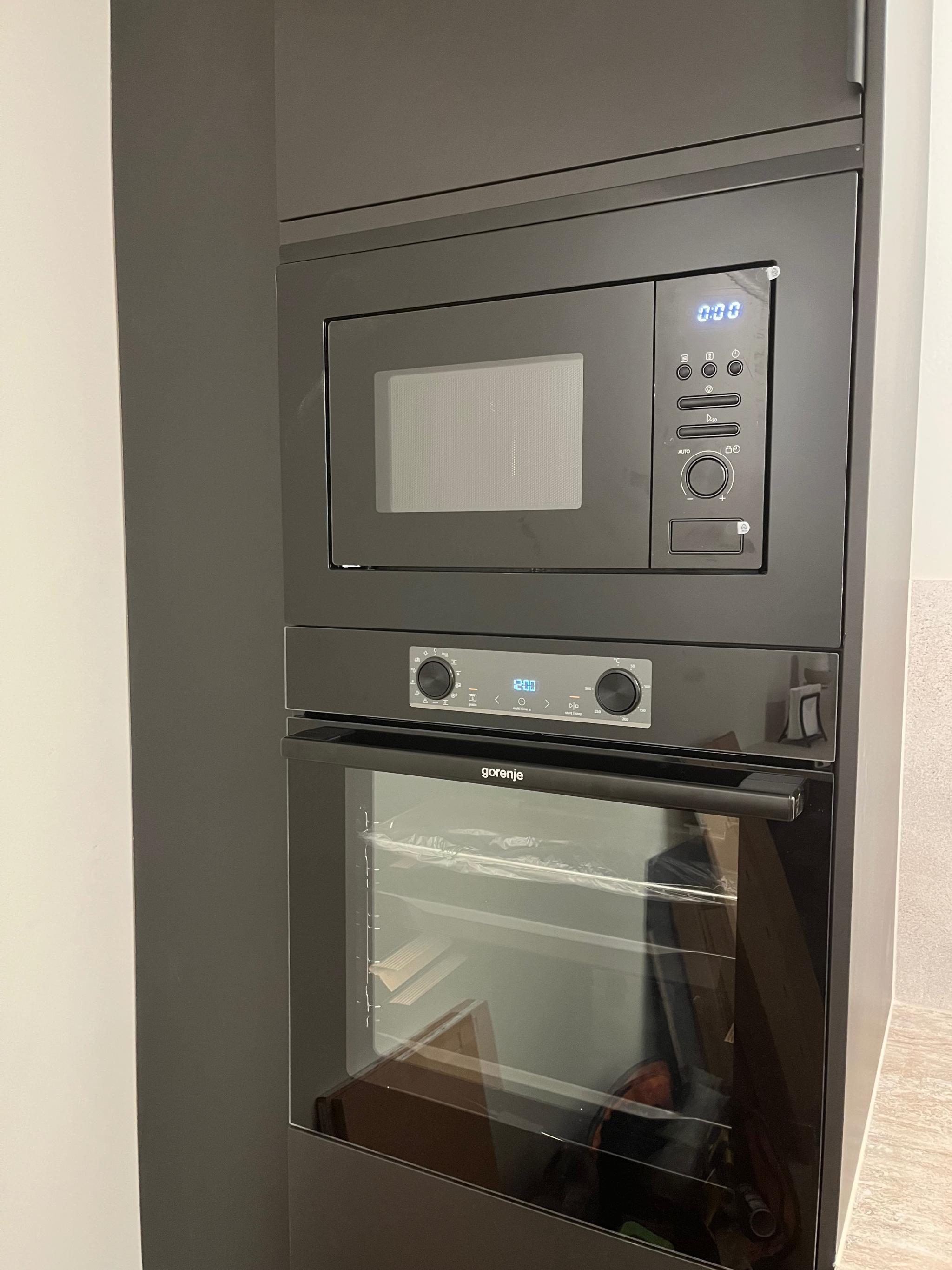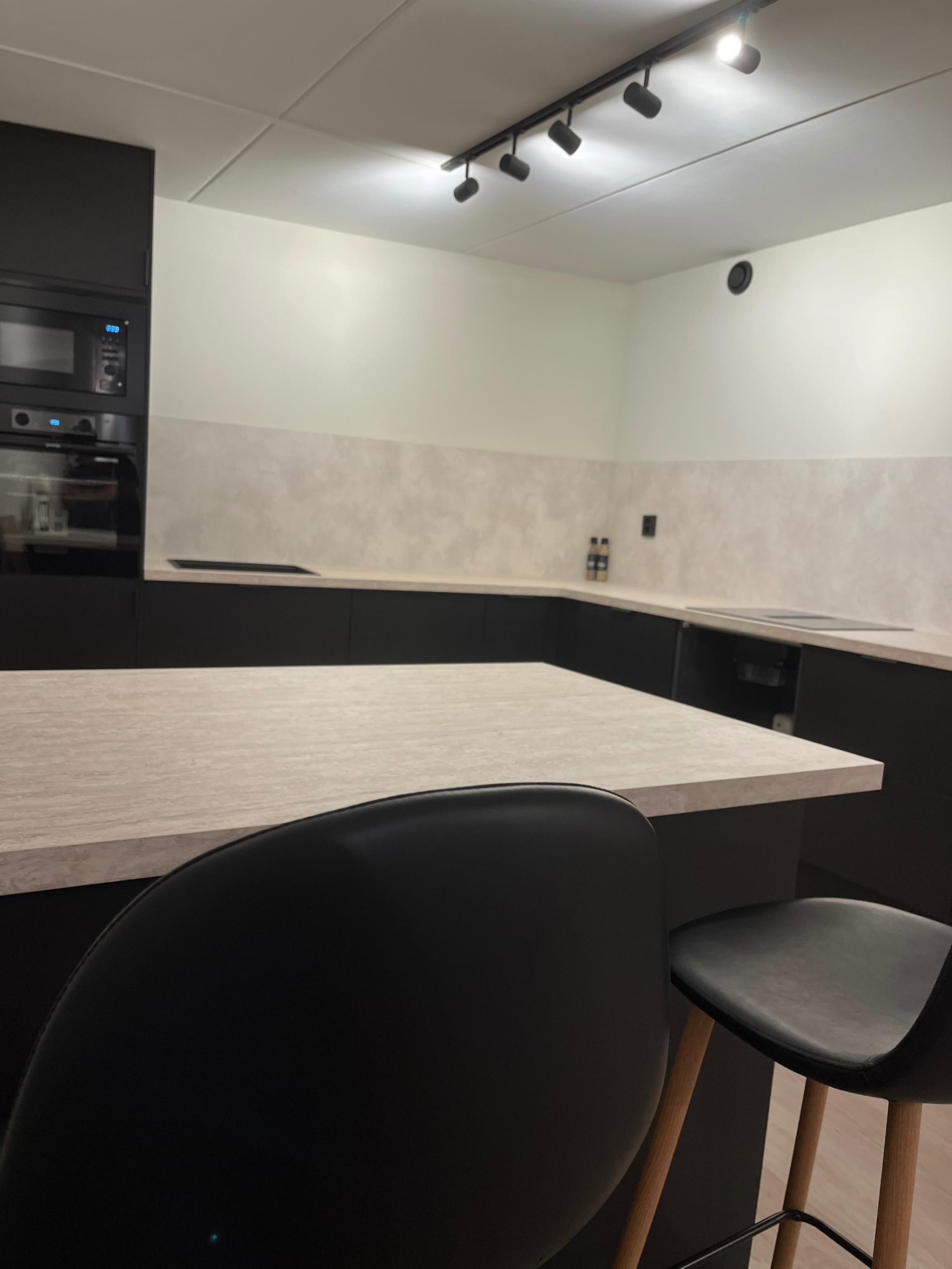 • Nytt ubrukt kjøkken med integrerte hvitevarer: oppvaskmaskin, kombiskap, stekeovn og platetopp
