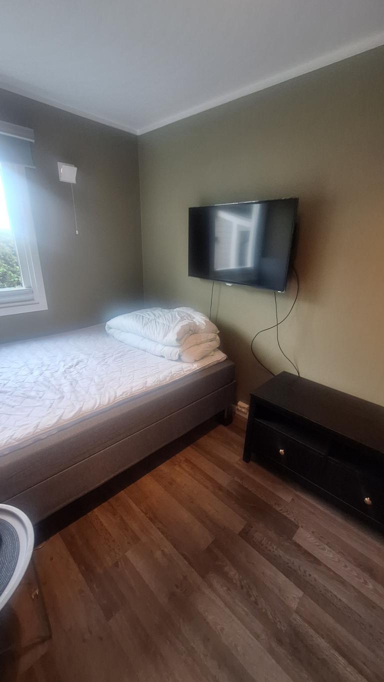 Vaskemaskin og 42" tv med Altibox tv tilgang.