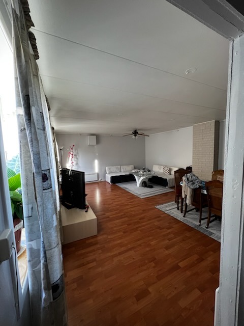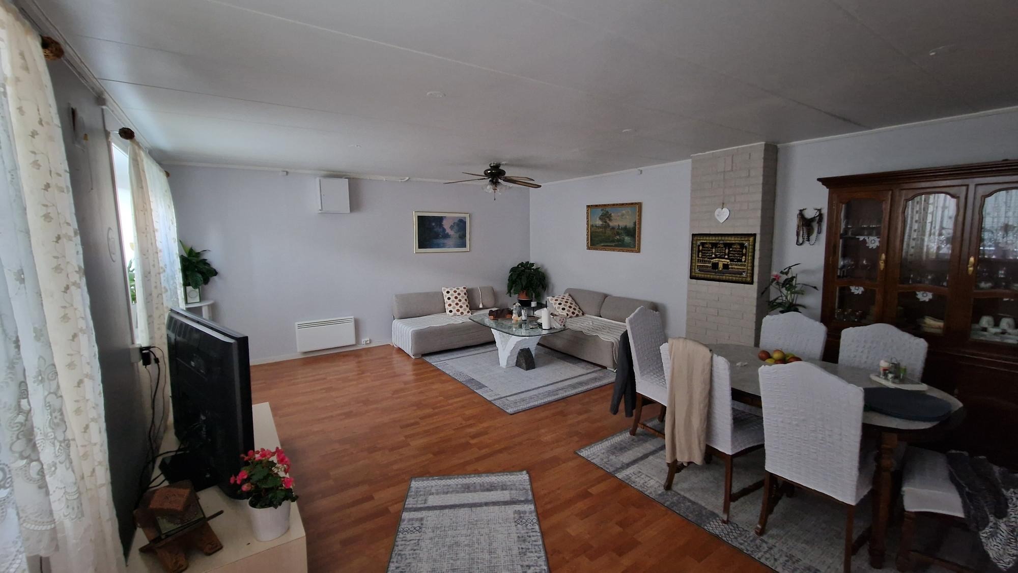 Romslig stue med peis og god plass til både sofa- og spisegruppe