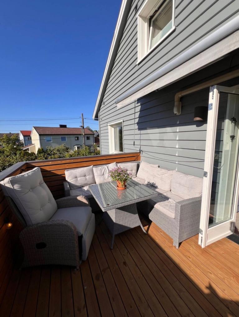 - Stor terrasse med terrasse møbler