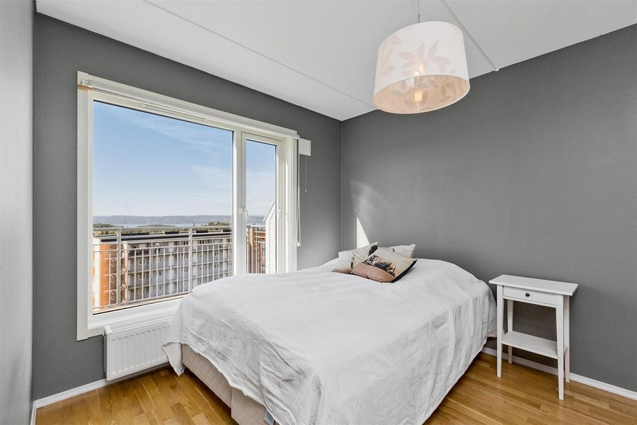 Meget lys, moderne og god standard leilighet med praktisk planløsning. Boligen har hyggelig balkong på ca 15 kvm med utsikt over Øyne og Bunnefjorden. Egen garasjeplass i felles garasjeanlegg med fjernkontroll garasjeport.