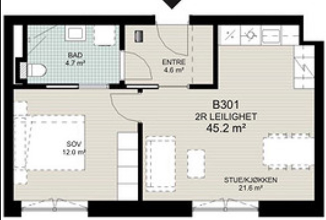 Strøken og lekker 2- roms leilighet fra 2020. 45 kvm med 3,8m takhøyde, beliggende i 3 etasje i Vinslottet. Leiligheten inneholder romslig gang, stue med åpen kjøkkenløsning, hems (kan være ekstra soveplass eller kontorløsning) 1 soverom med to doble garderobeskap, samt pent flislagt bad med opplegg for vaskemaskin og tørketrommel. Leiligheten disponerer 1 bod i underetasje.