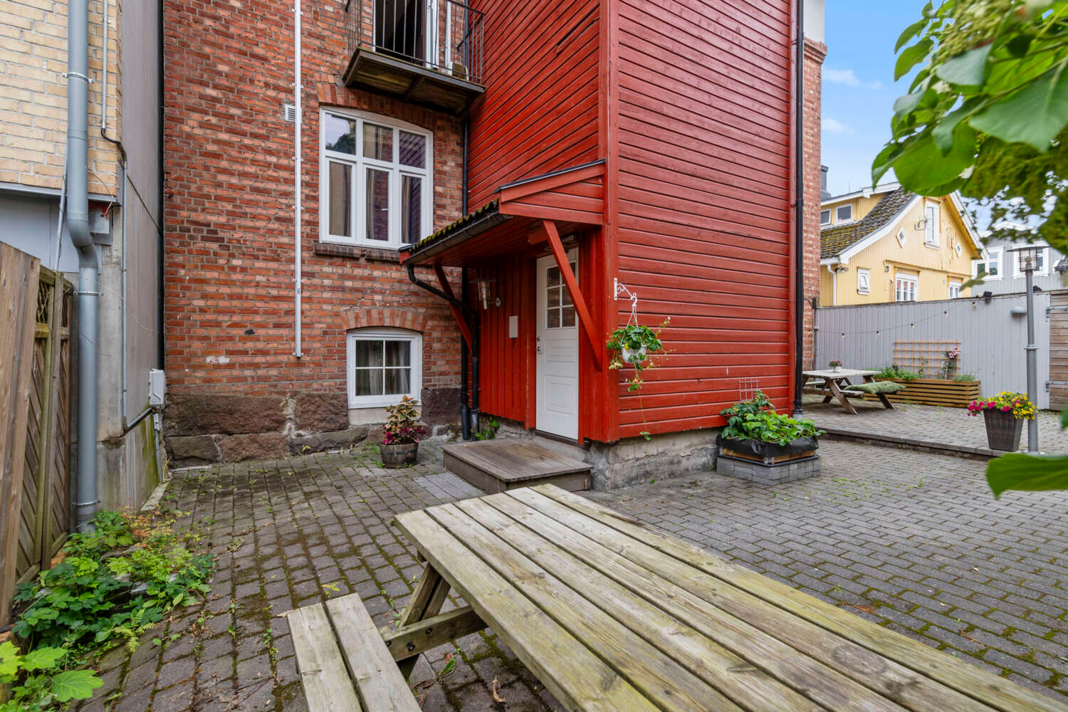 Bygården har inngang fra en skjermet, trivelig bakgård, og ligger kun et kvartal fra Farmandstredet og gå avstand til brygga, bus, togstasjon og sykehus.