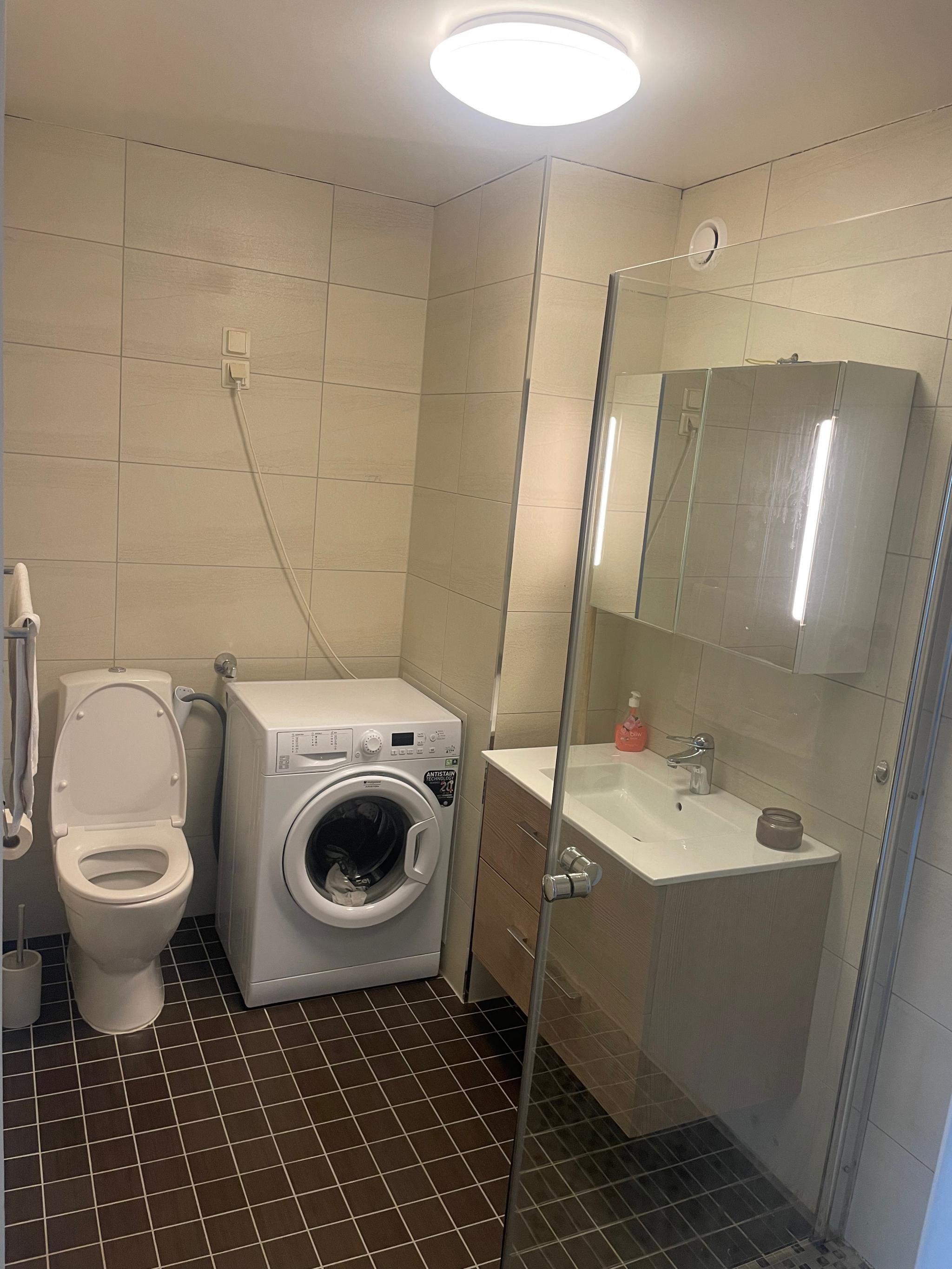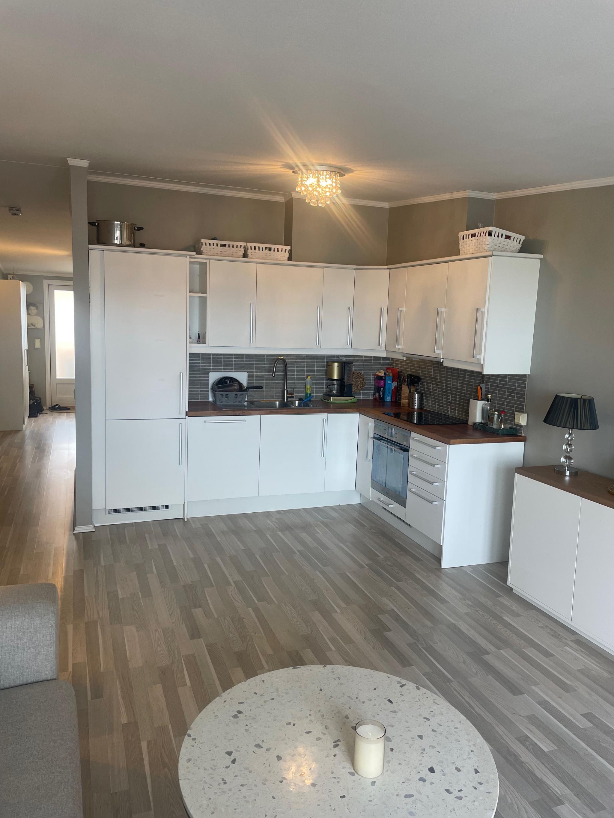 Inkluderer: Varmtvann, Fyring, Kabeltv, bredbånd. Integrerte hvitevarer er inkludert i leiepris