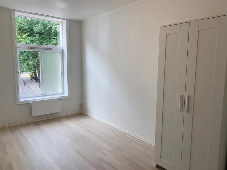 Det ene rommet er ledig nå, og er på 9.2 m2 og vendt mot bakgård. Det andre er på 11 m2 og er ledig fra 1. juli. Pris: 11 000 kr. Det er seng inkludert om du ønsker.