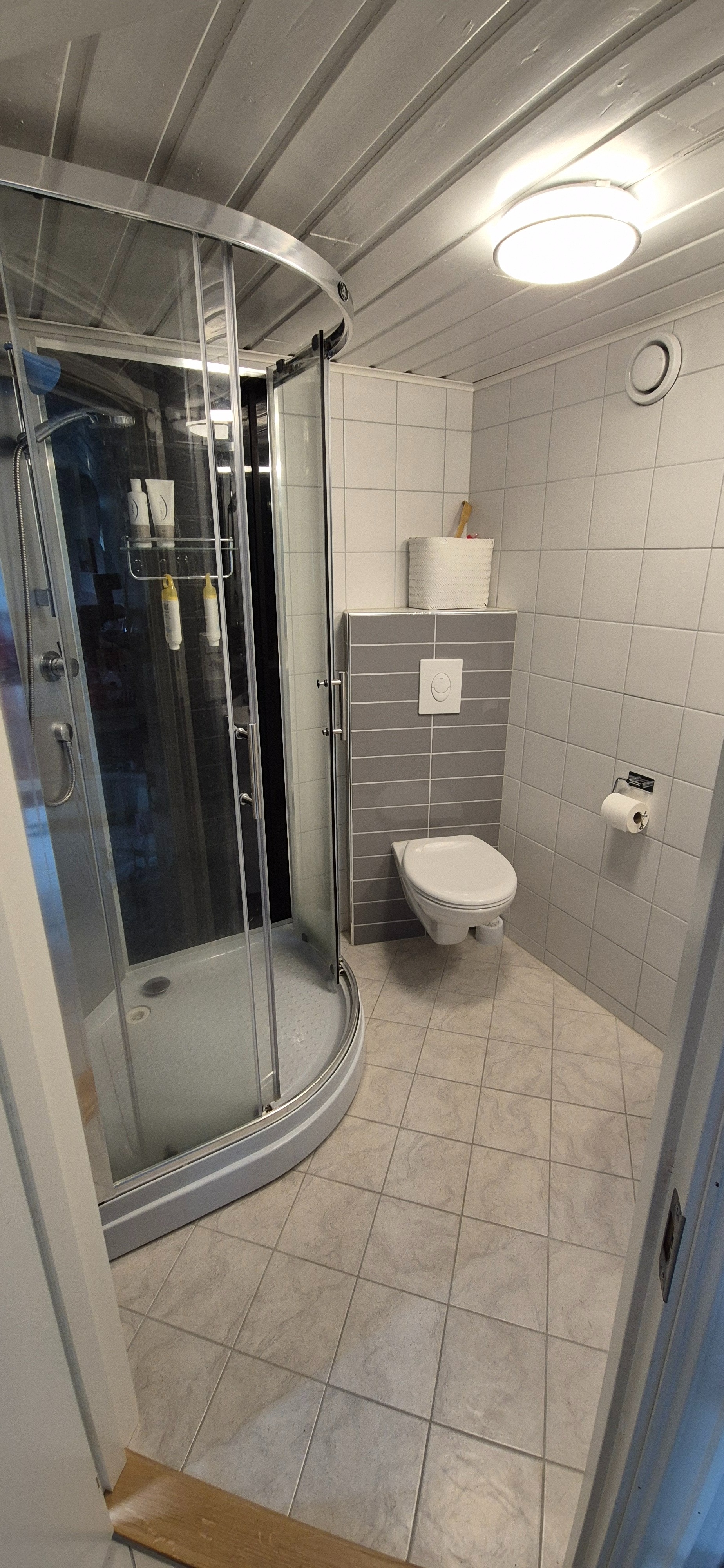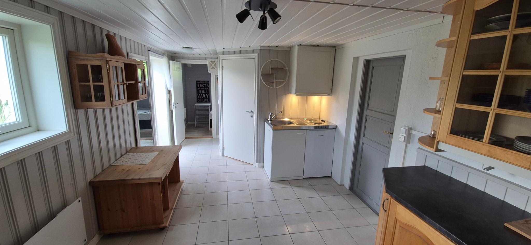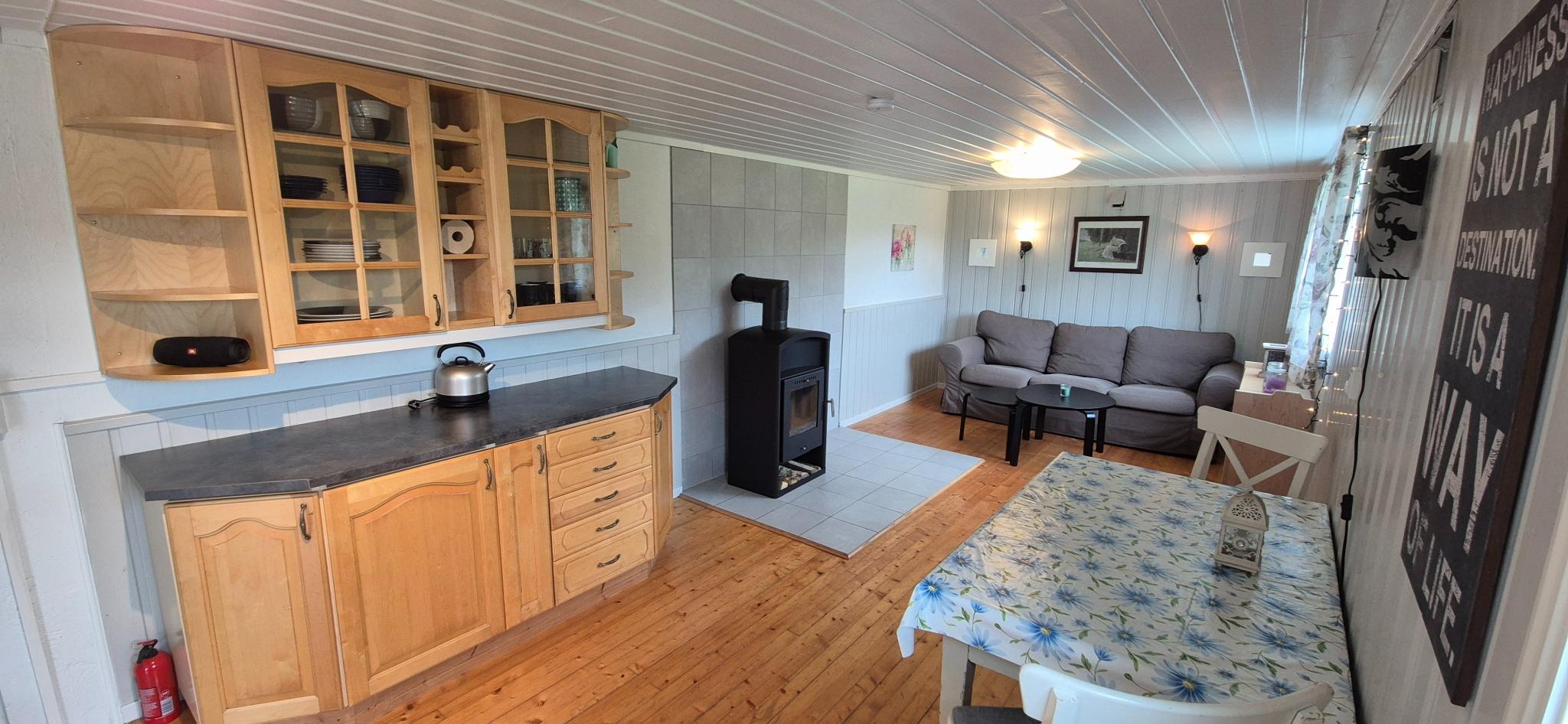Egen inngang, parkeringsplass for 1 bil, uteplass og tilgang til vaskerom. Varmekabler og vedfyring.