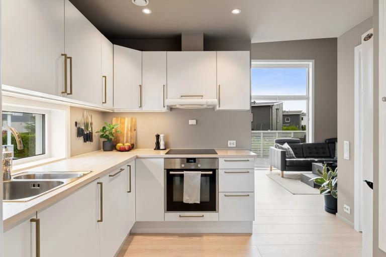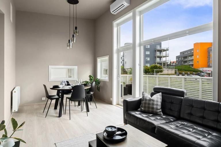 Moderne og lys leilighet på 70 kvm i et rolig og sentralt område på Bryne. Leiligheten ligger i 2. etasje har to soverom, romslig stue med åpen kjøkkenløsning og utgang til balkong
