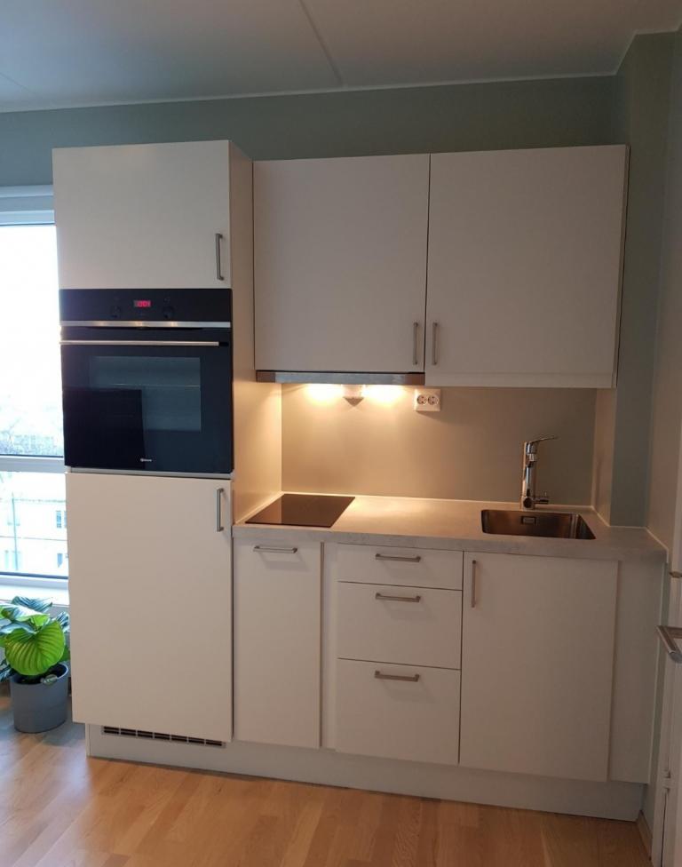 - Hybelleiligheten leies ut med kjøl og frys, stekeovn, platetopp og vaskemaskin