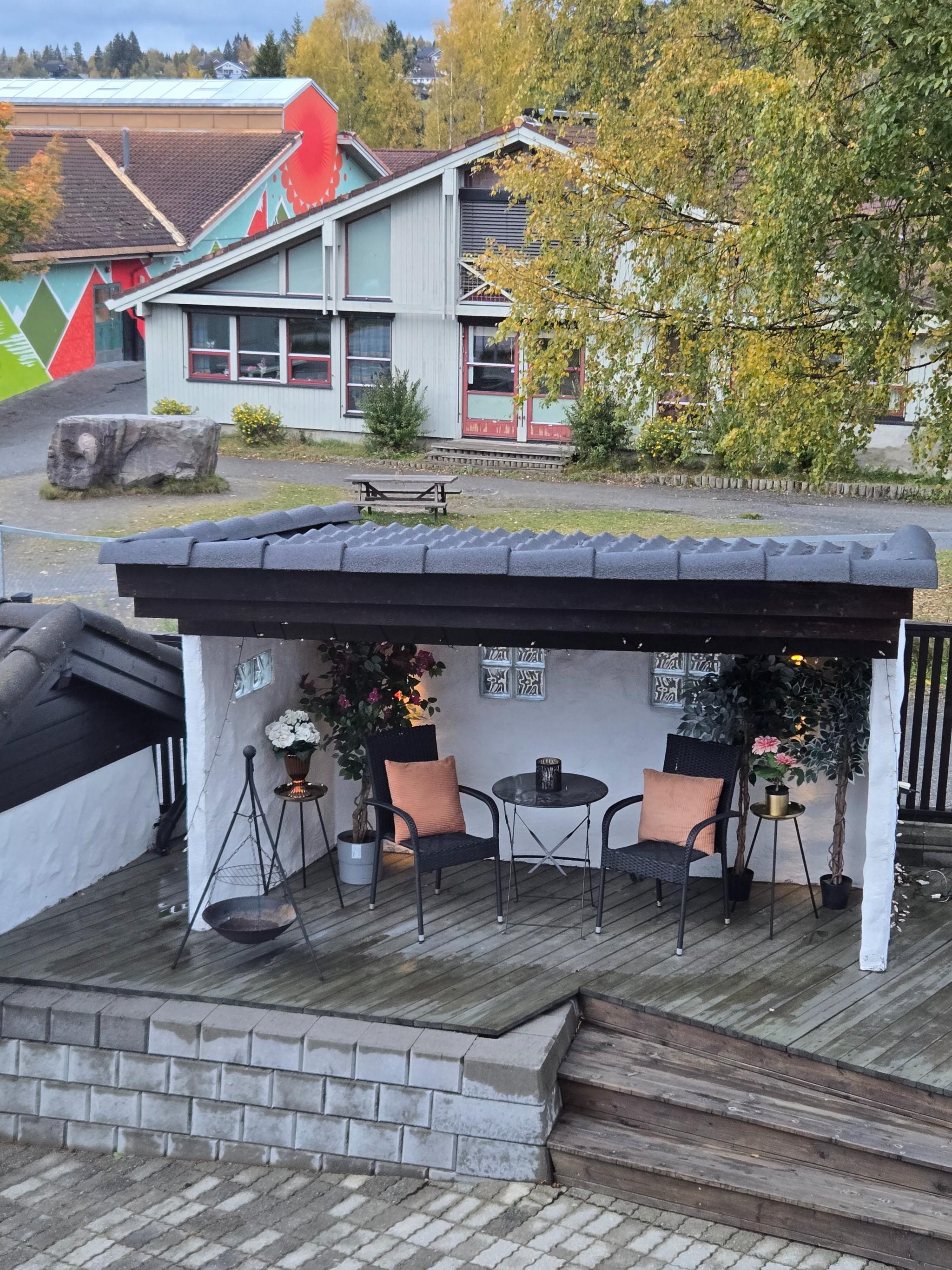 Samt tilgang til terasse med bålpanne du kan benytte deg av.