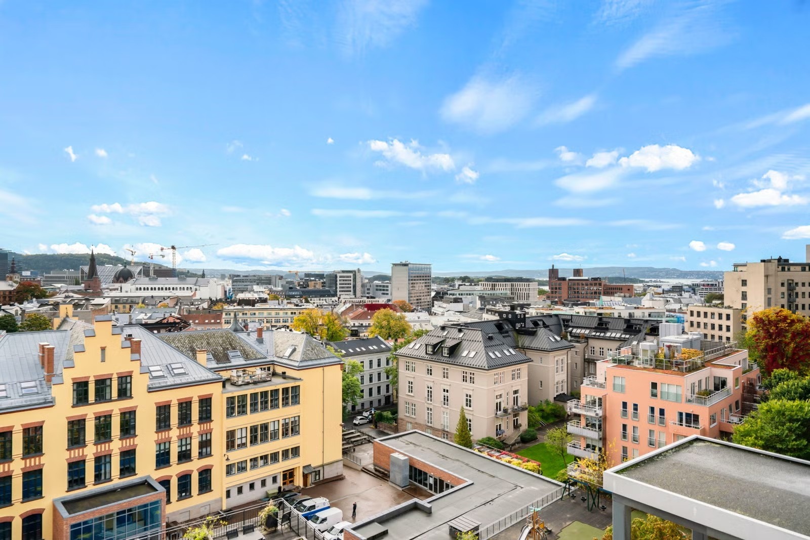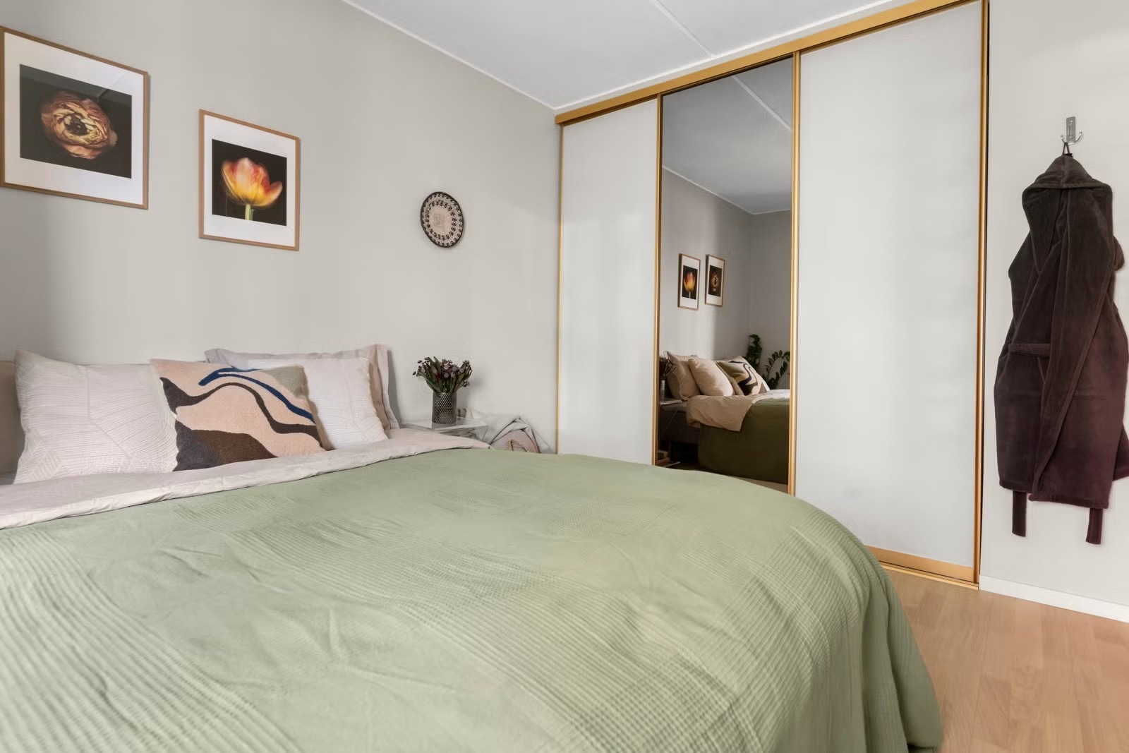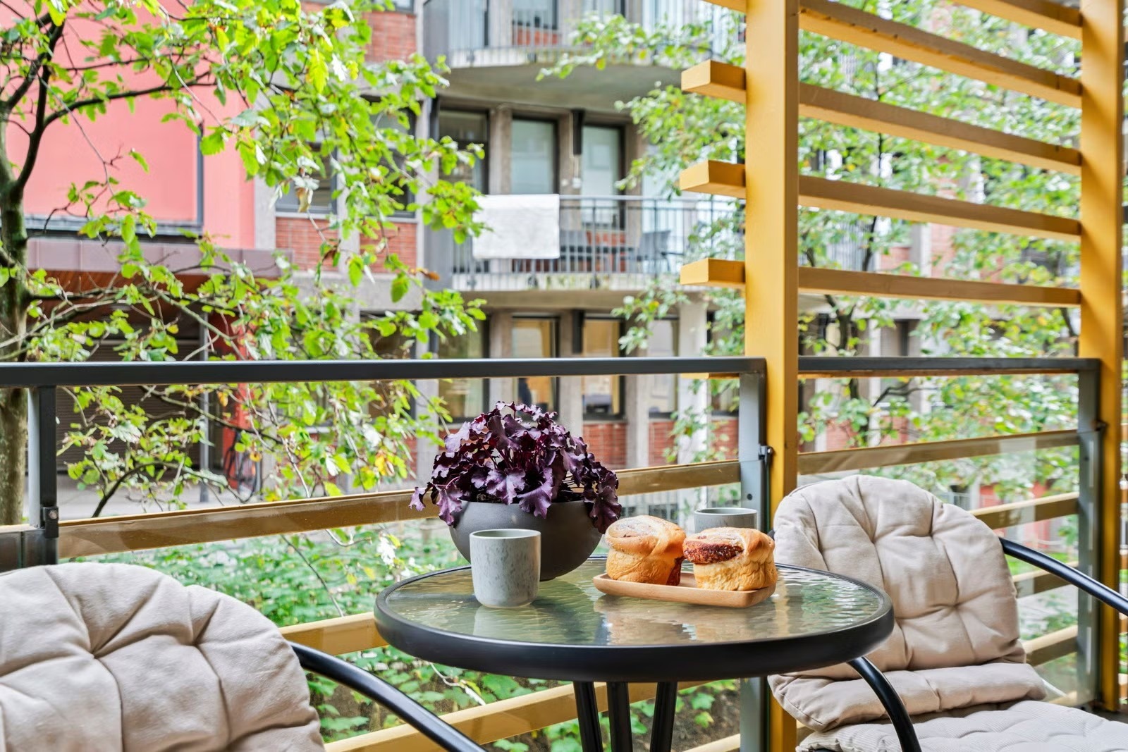 Leiligheten oppleves som luftig og har en god planløsning. Fra stuen er det utgang til en romslig balkong vendt mot indre intern gangvei i grønne og bilfrie omgivelser. På sommerstid er fellesområdene omgitt av en grønn oase med vakre busker og velstelte parkområder. Beboerne disponerer en felles takterrasse med gode solforhold.