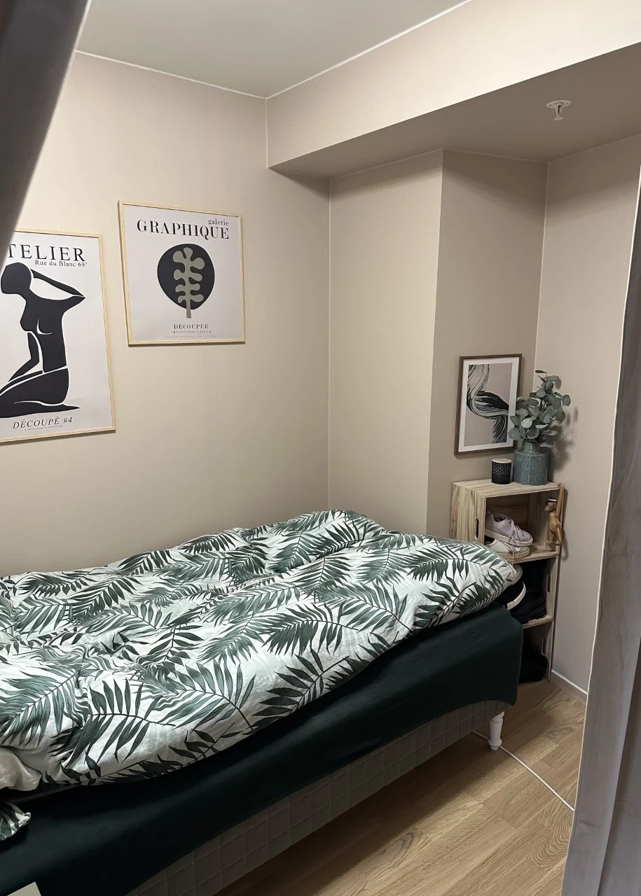 Leiligheten er en 1-roms, men soverom ligger slik til at det blir et eget soverom.