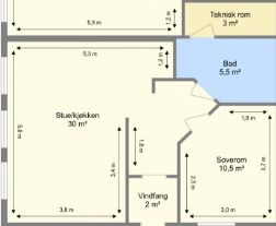 Lys og romslig 2-roms leilighet til leie – 51 kvm