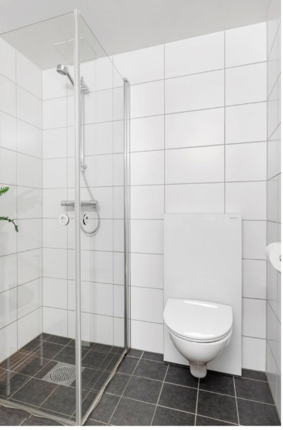 - Romslig bad. Plass til å tørke klær eller vaske sykkelen.
