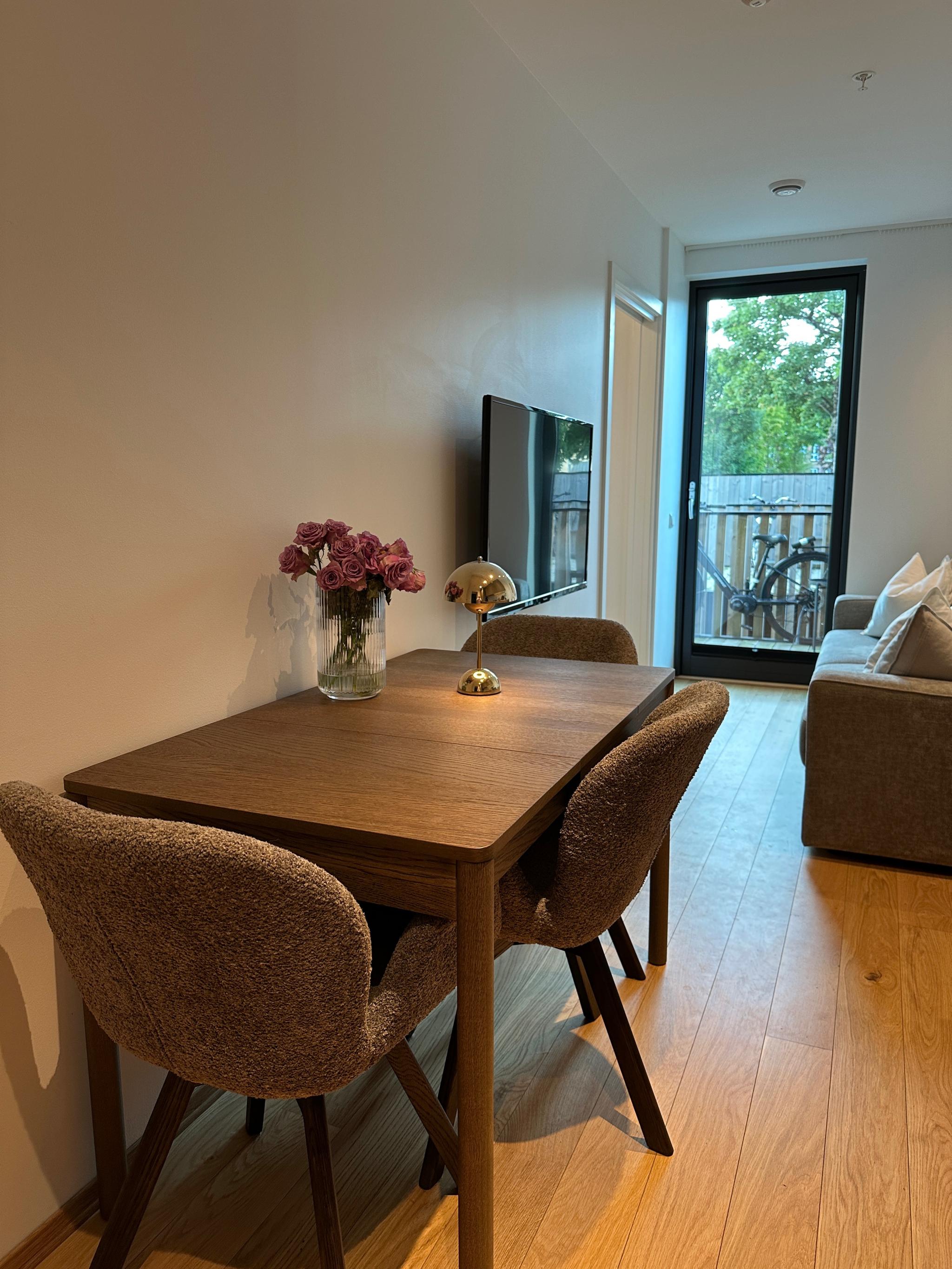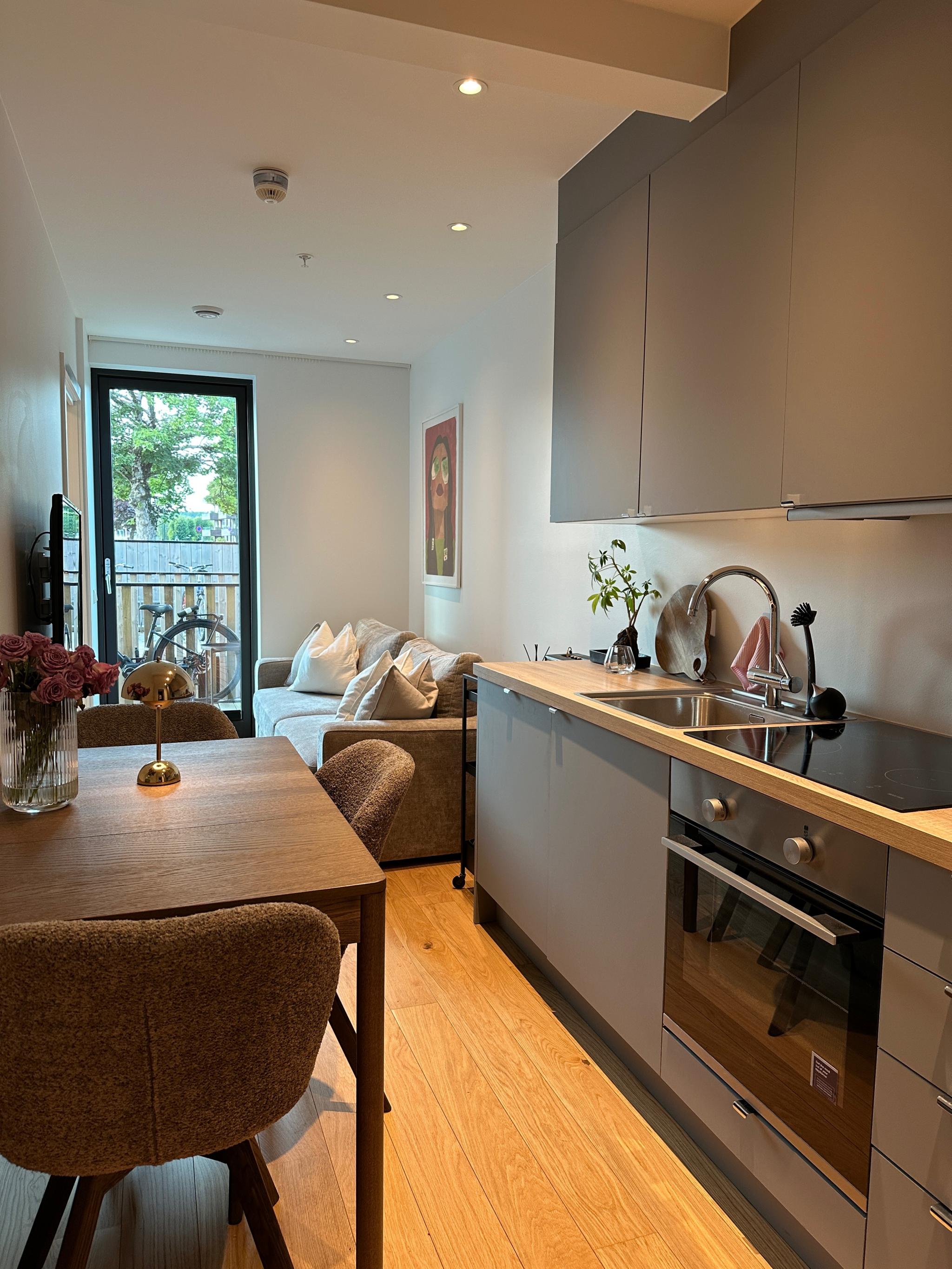 Inkluderer: Bredbånd, TV, felleskostnader, vann og avløp, avfallshåndtering. Seng, sofa og vaskemaskin følger med under leieperioden.