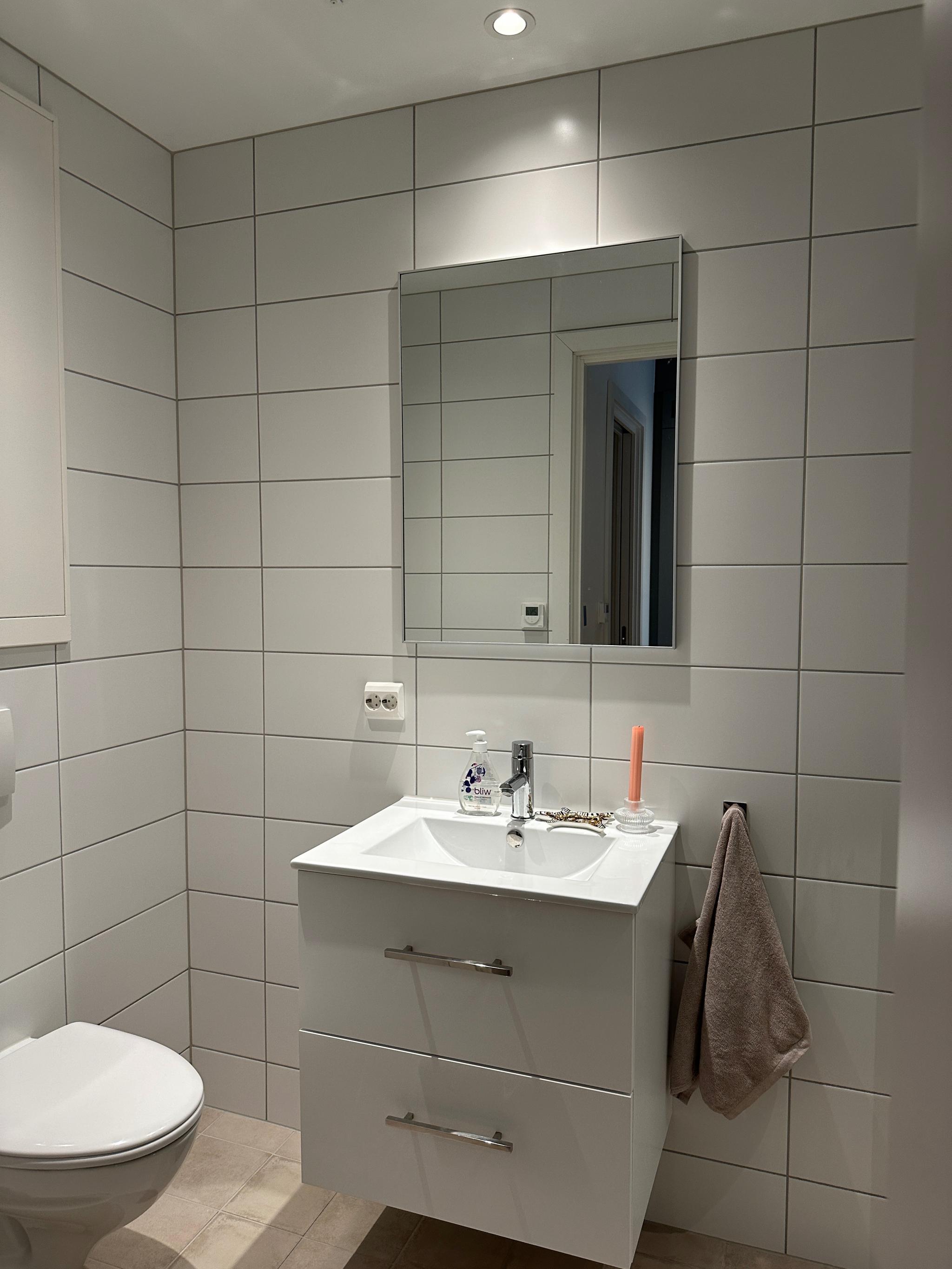 • Bad med kombinert vaskemaskin/tørketrommel og skap
