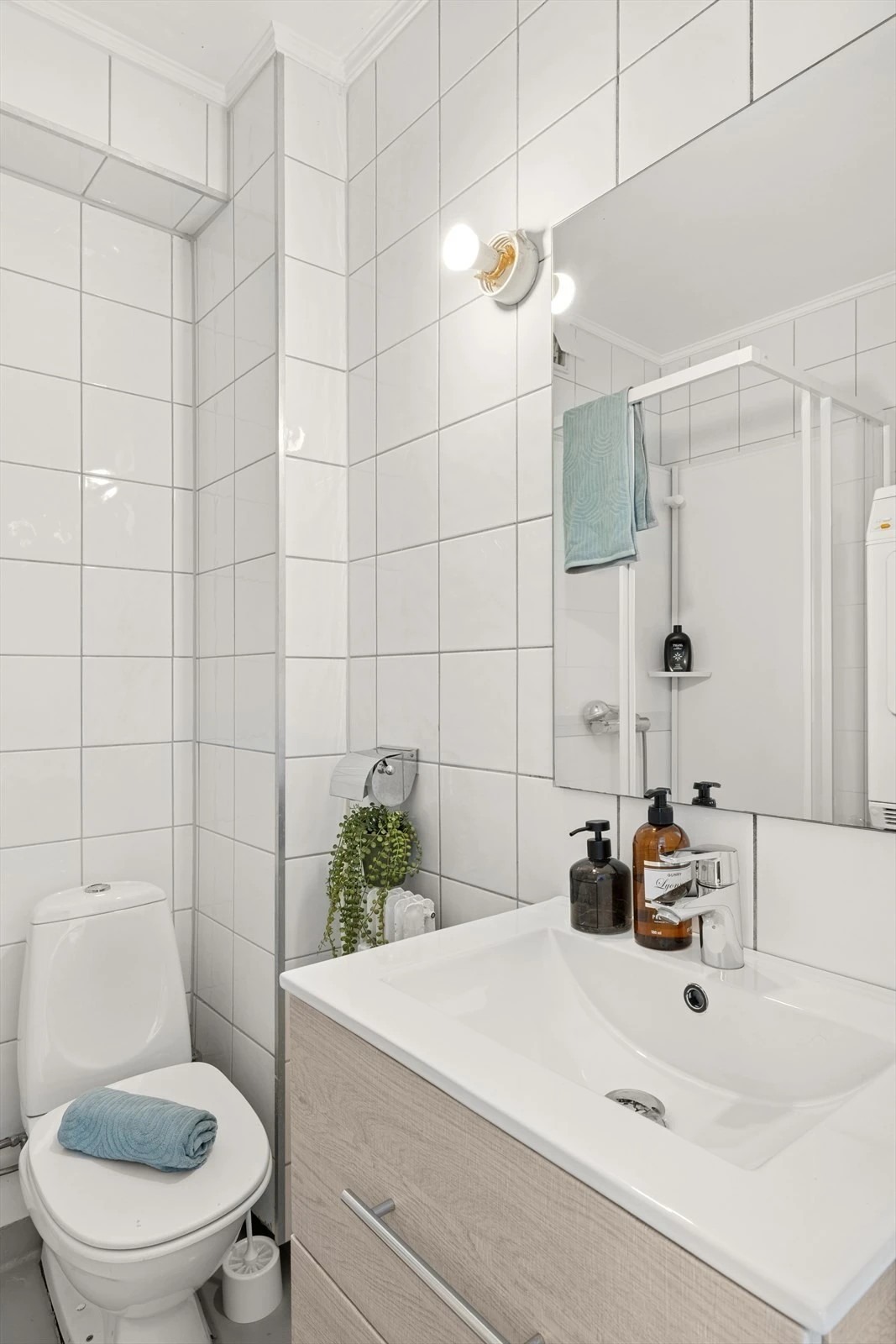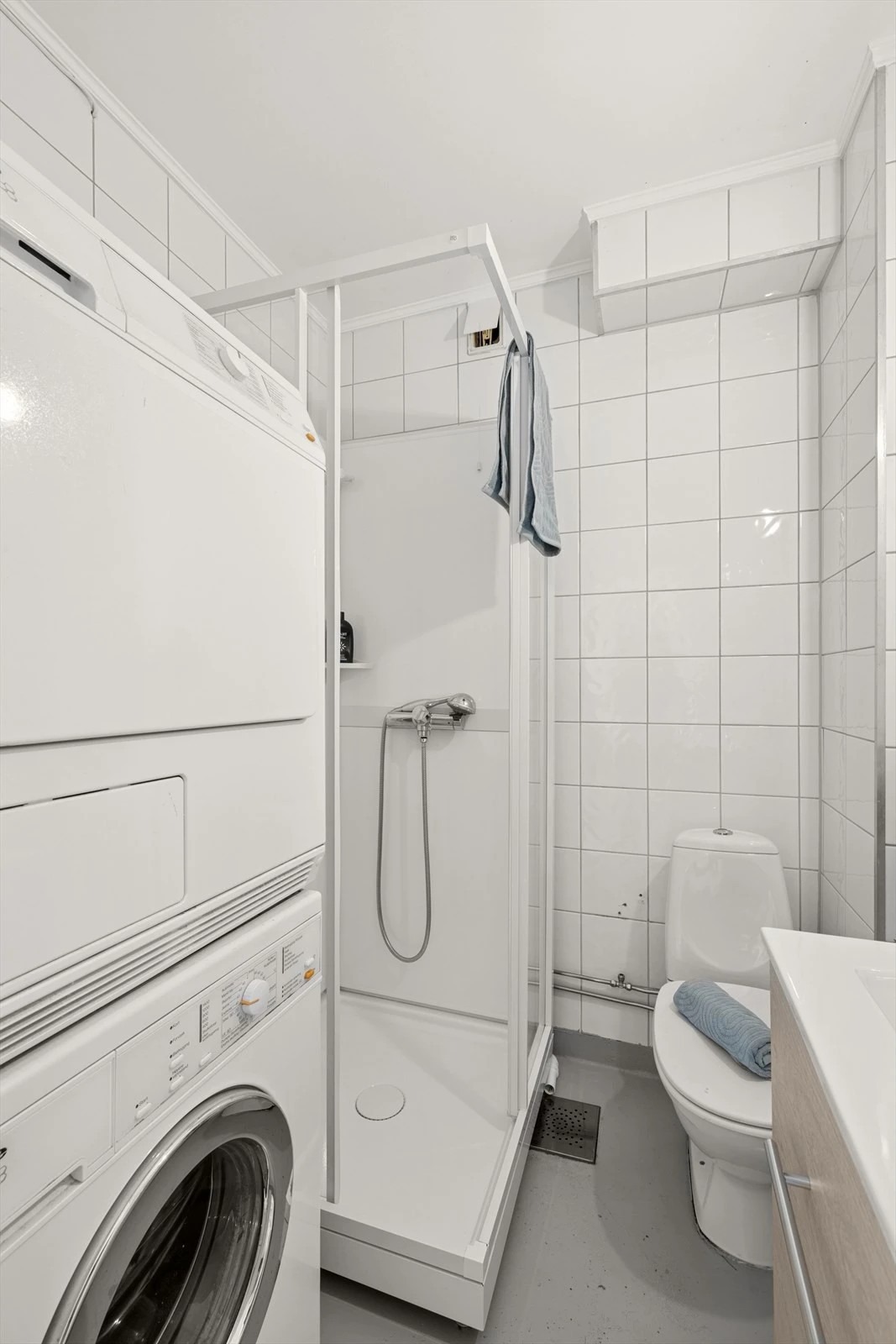 • Bad med dusjkabinett og vaskemaskin.