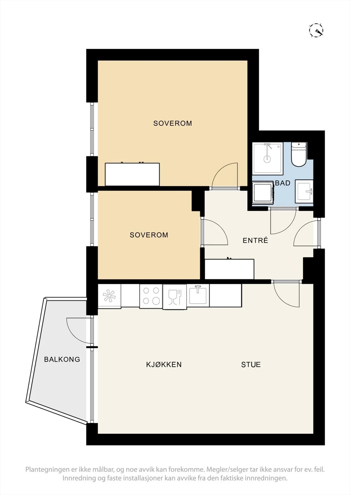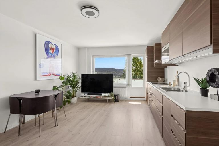 • 2 soverom + åpen stue/kjøkkenløsning