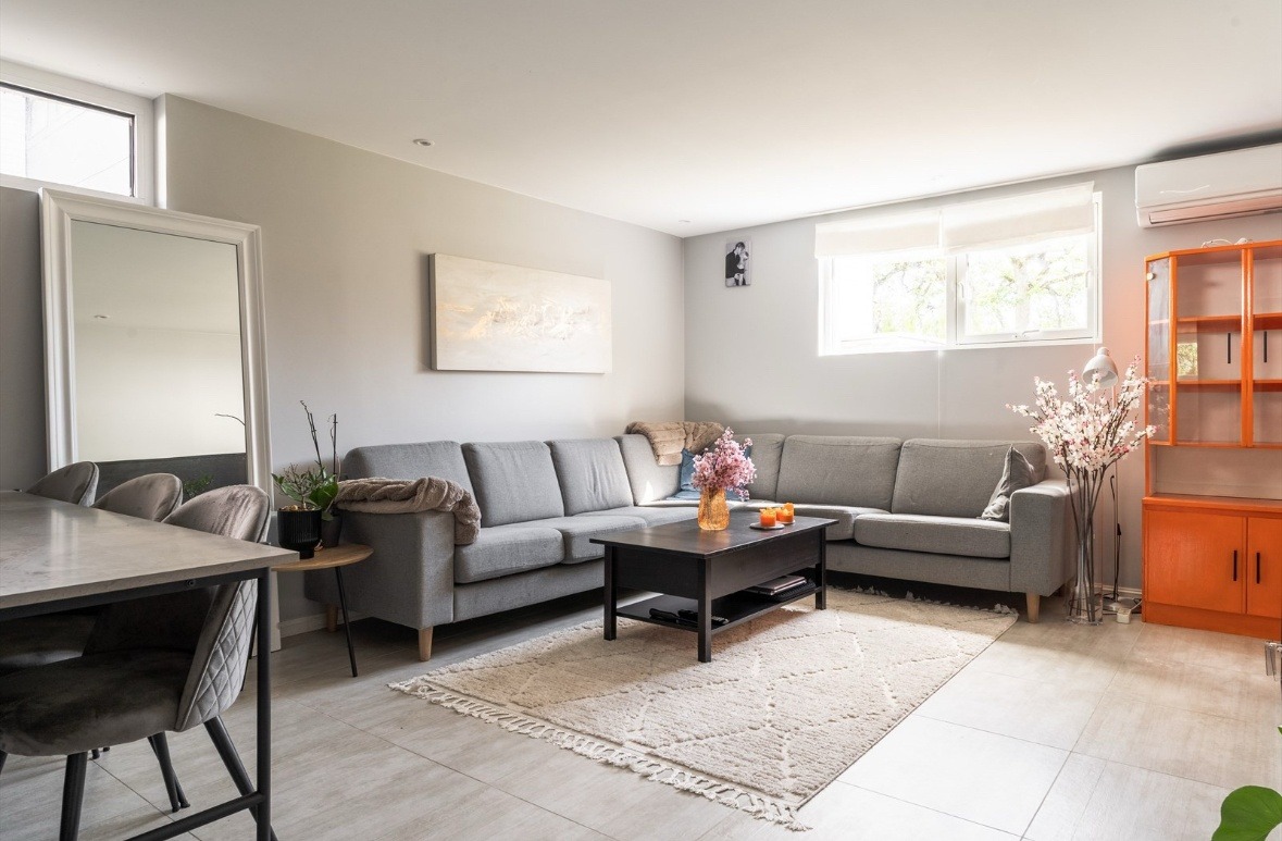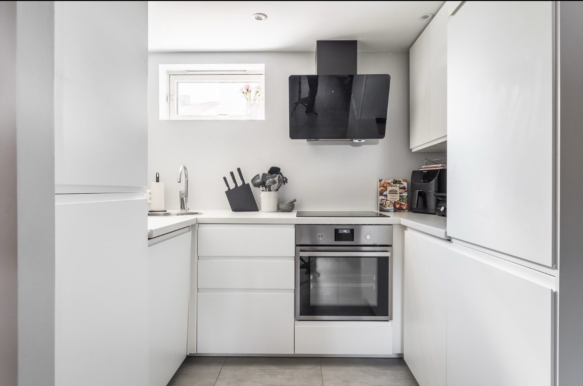 Boligen er delvis møblert og inneholder kjøkken, stue, romslig bad, eget vaskerom og soverom. Det er også mulig å etablere kontorplass.
