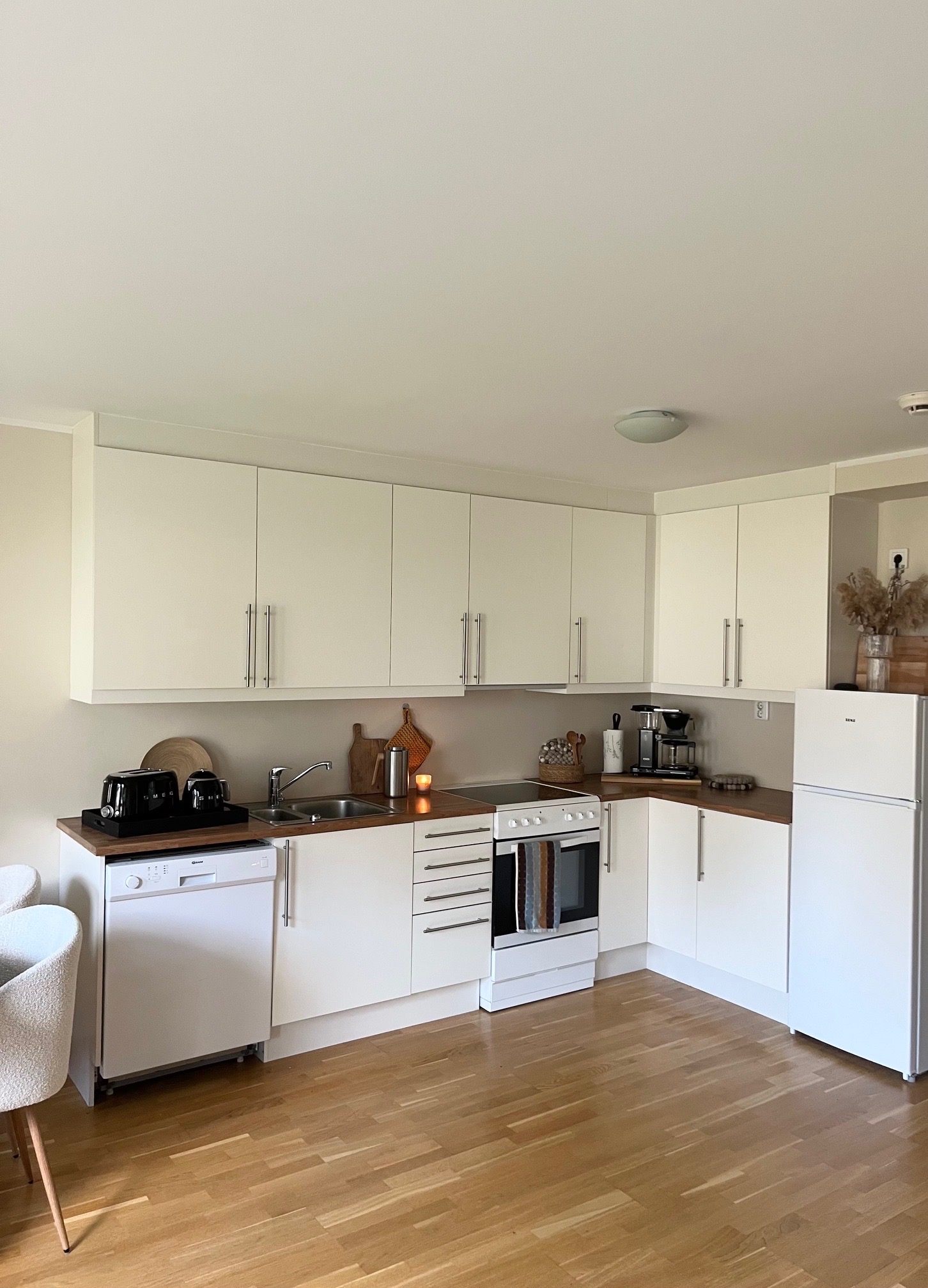 Leilighet har god planløsning med et soverom med bod/walk in closet , åpen kjøkken planløsning med oppvaskmaskin og komfyr med karamisk plate følger med i leie .