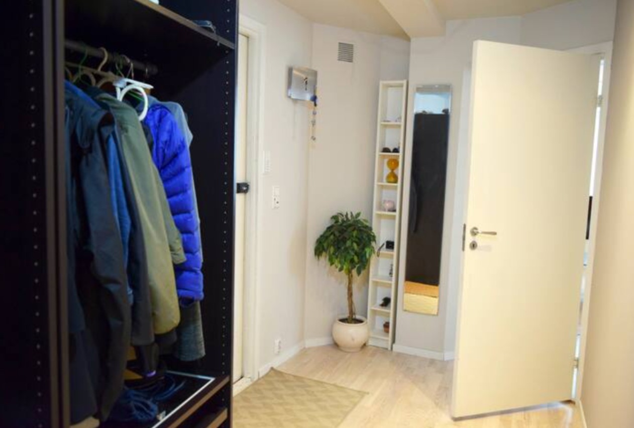 Stor gang med plass til oppbevaring, soverom med stor seng, sminkebord og skap. Badet er romslig, med dusjavlukke og bredt speil. Kan leies ut med alt inkludert, også sengetøy, håndklær etc. (etter avtale).