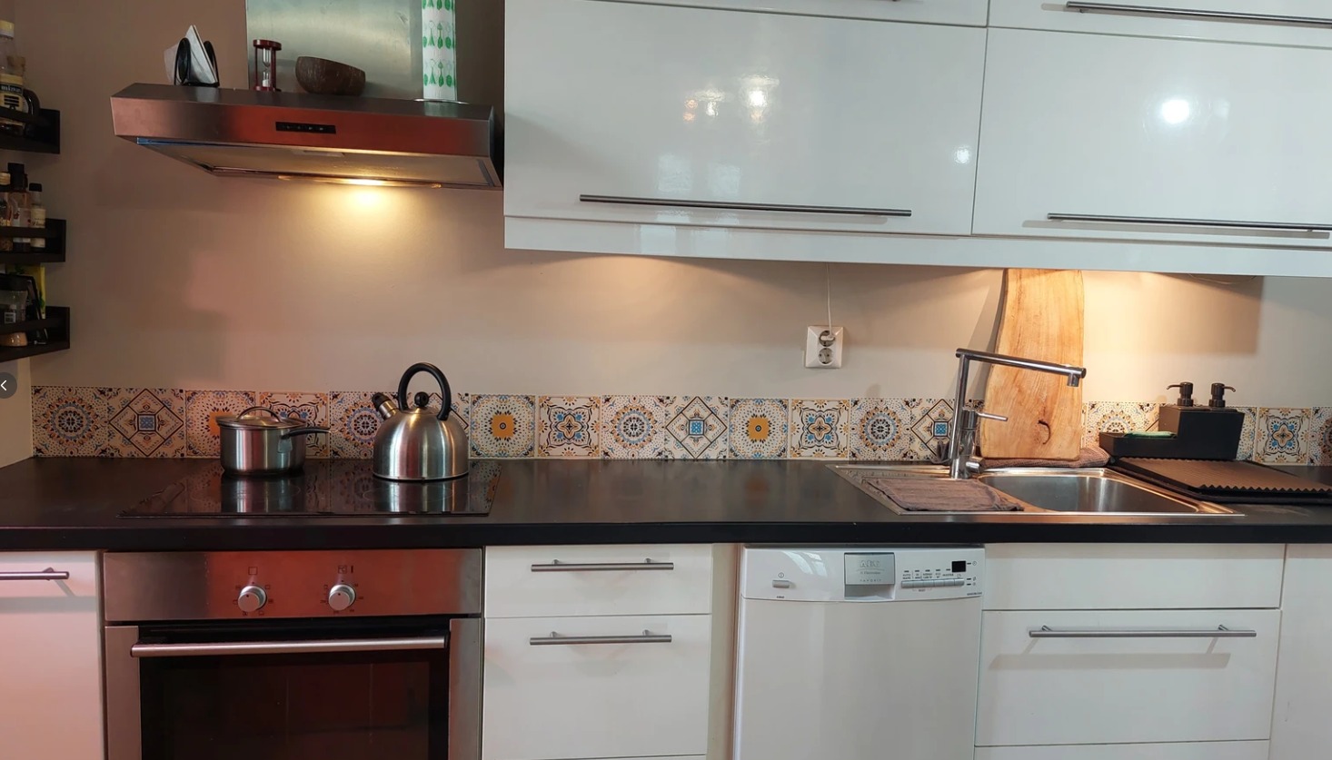 Leies ut fullt møblert med komfortabel sofa, tv (65¨) og spisebord med fire stoler. Kjøkkenet har induksjonsplater, komfyr, oppvaskmaskin, kjøleskap med frysedel, (ekstra fryseskap hvis ønskelig), kaffetrakter, juice-presse, blender, food processor etc.