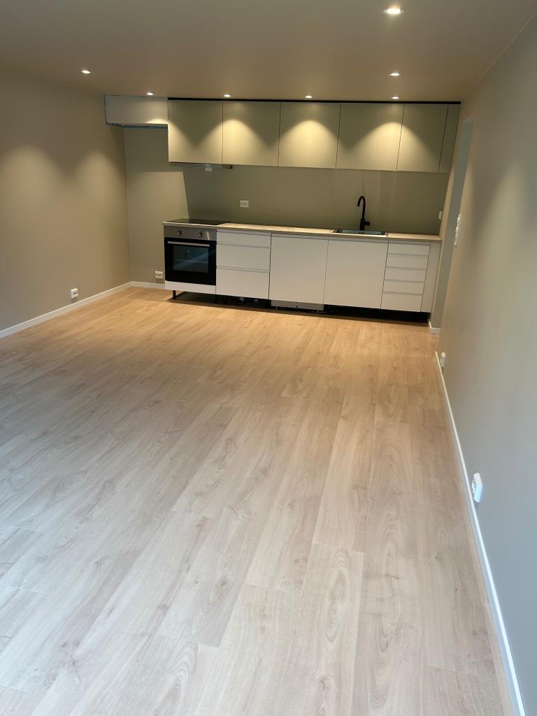 Nyoppusset 55 kvm leilighet i kjeller med store vindusflater. Leiligheten er nyetablert i 2025 i enebolig fra 1969. I hoveddel av huset bor vi en familie på 5.