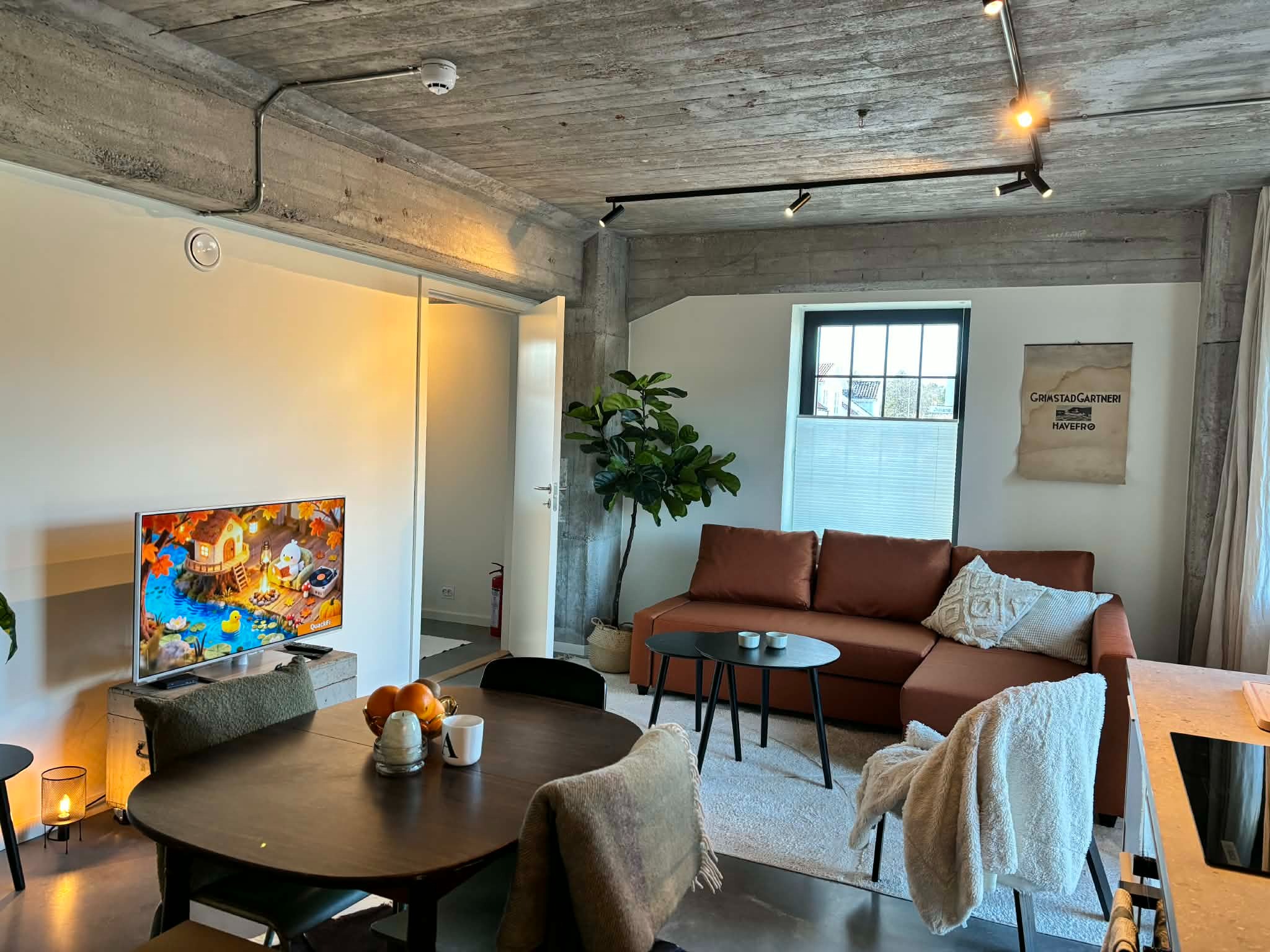 Husleien inkluderer kabel-TV og internett.