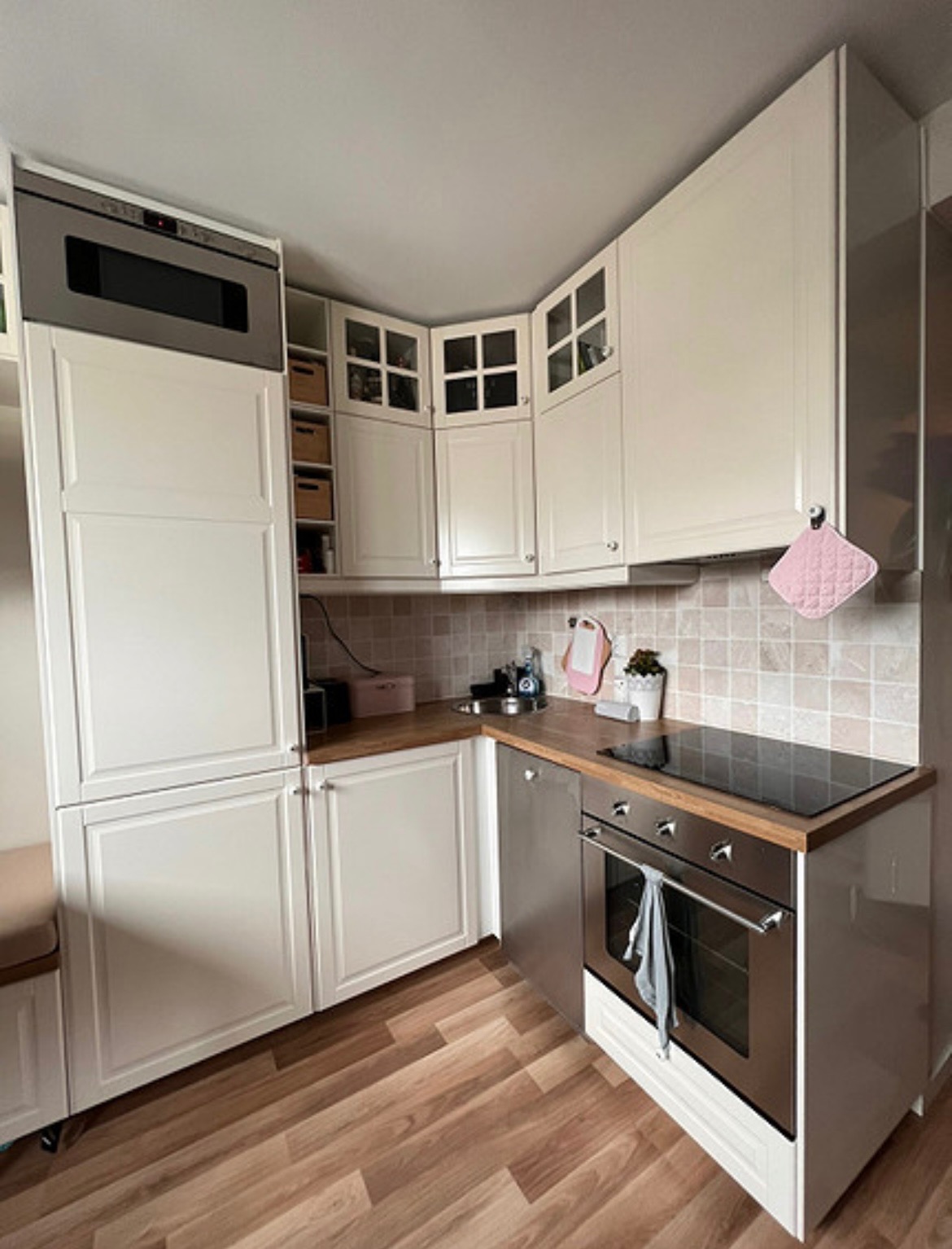 • Kjøleskap med fryser, mikrobølgeovn, oppvaskmaskin, komfyrplate, ovn, kaffemaskin.