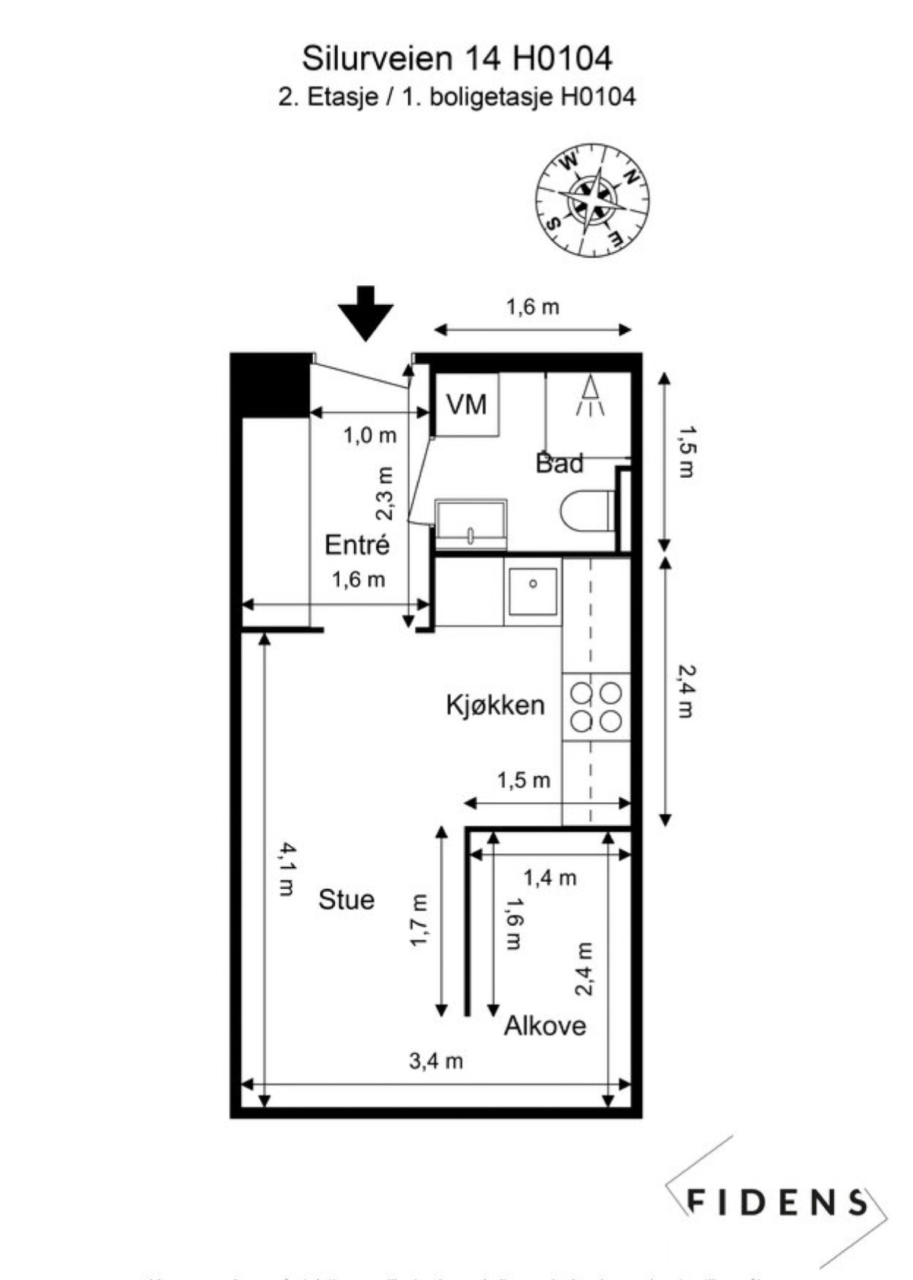 Leiligheten ligger i byggets 1. etasje, som tilsvarer 2. etasje fra bakkeplan, og gir dermed bedre lysforhold og mer privat beliggenhet enn klassisk bakkeplan. Bygget har heis. Planløsningen er effektiv med stue/kjøkken, alkove og delikat bad. Integrerte hvitevarer medfølger.