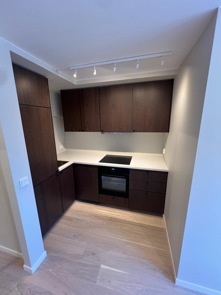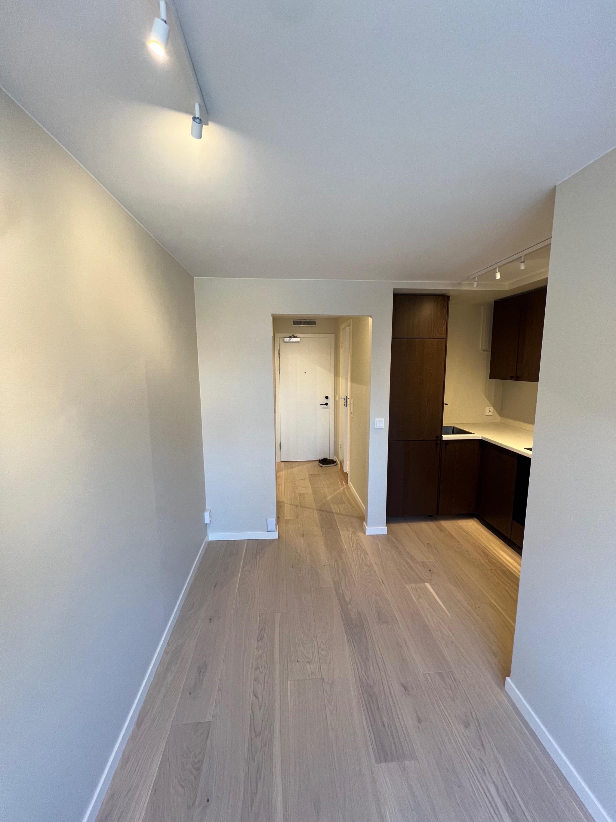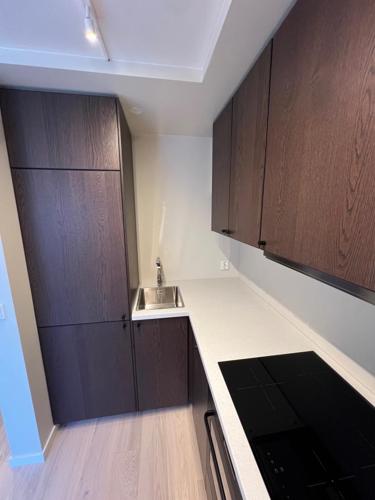 Ubrukt og totalrenovert 1-roms leilighet på 22 kvm beliggende attraktivt på Ullernåsen. Boligen er ferdigstilt i 2025 og har ikke vært tatt i bruk etter oppussing – kjøkken, bad, gulv, overflater og tekniske installasjoner er splitter nye og ubrukt. Beskyttelsesfilmer og etiketter sitter fortsatt på deler av innredningen.