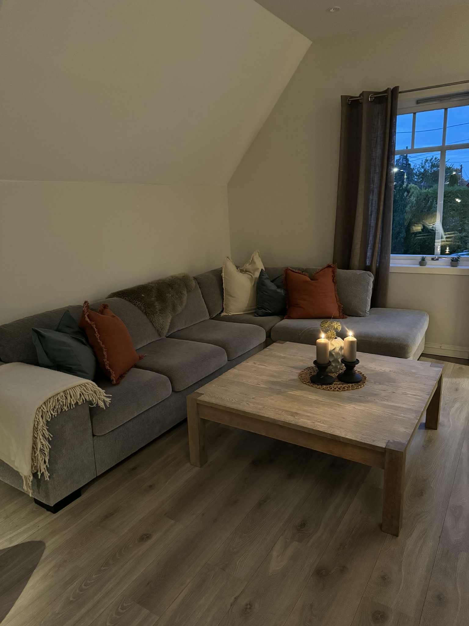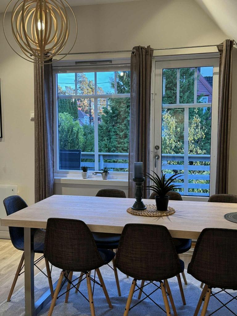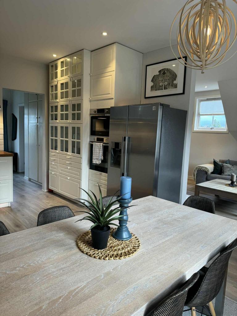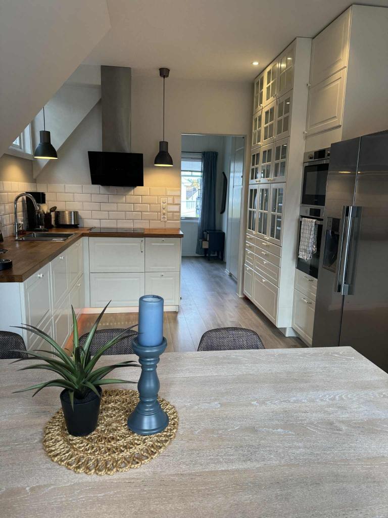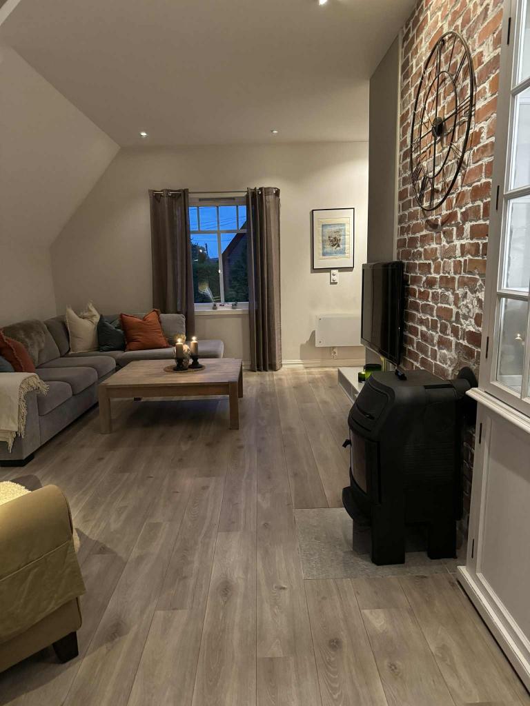 Moderne lys leilighet (ca. 80m2) i 2etg.+ loft. Møblert (kun for utleie, ikke privat hjem). Kan også leies ut umøblert.