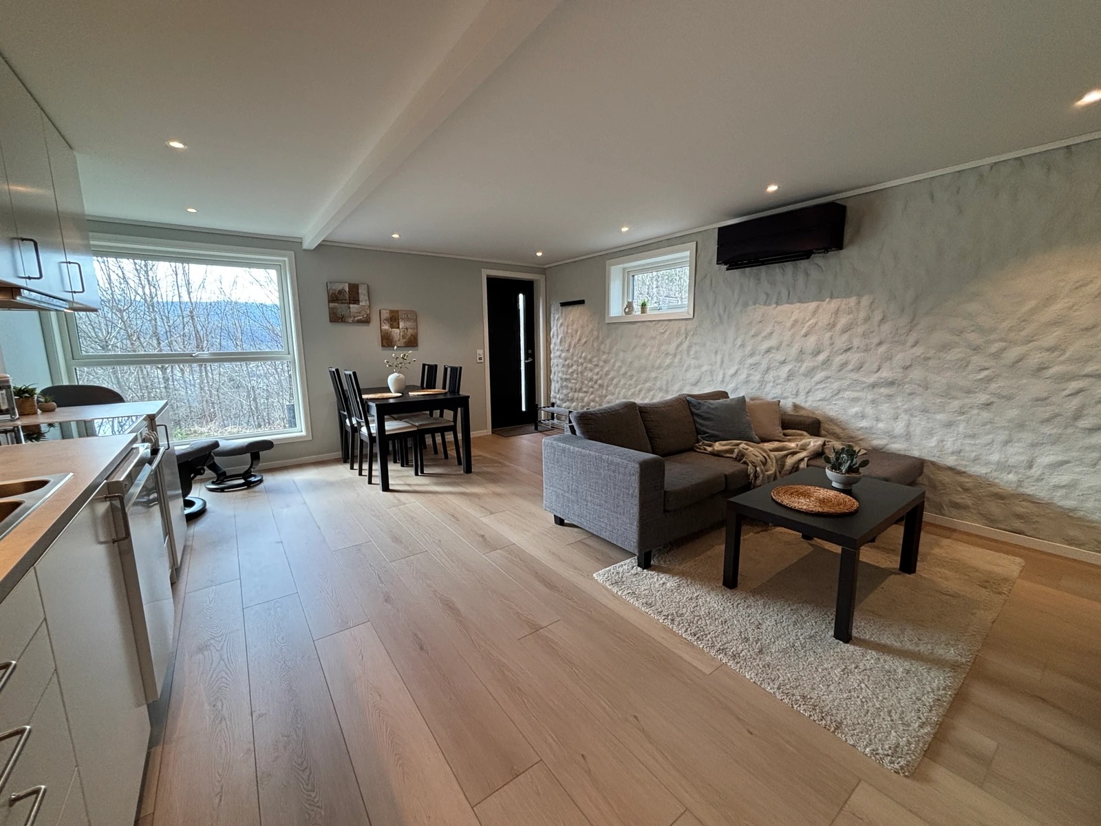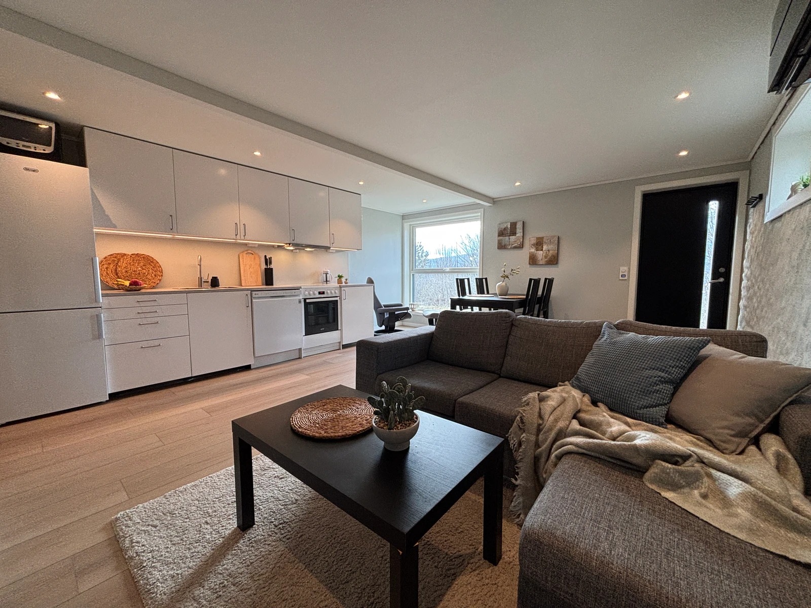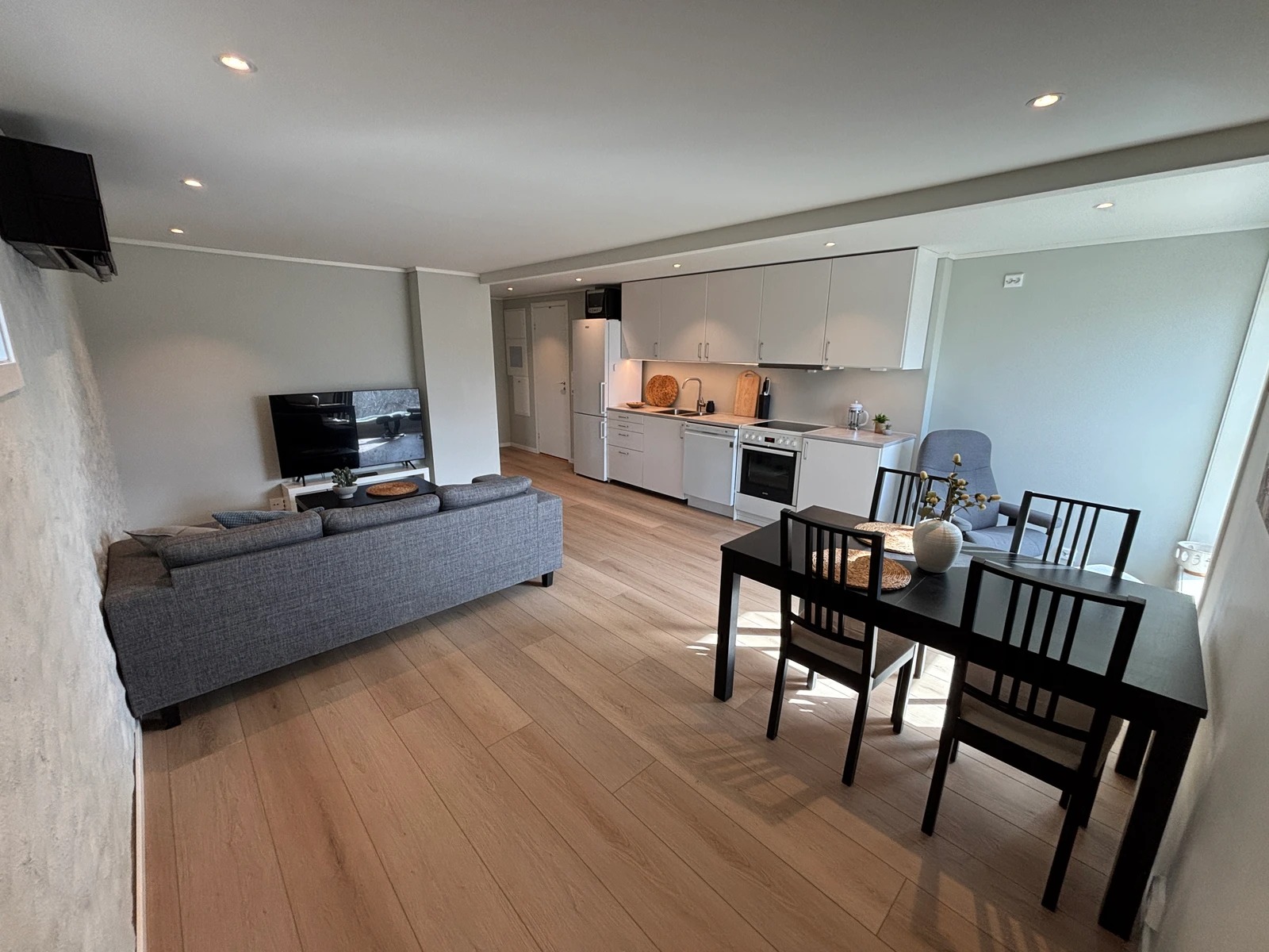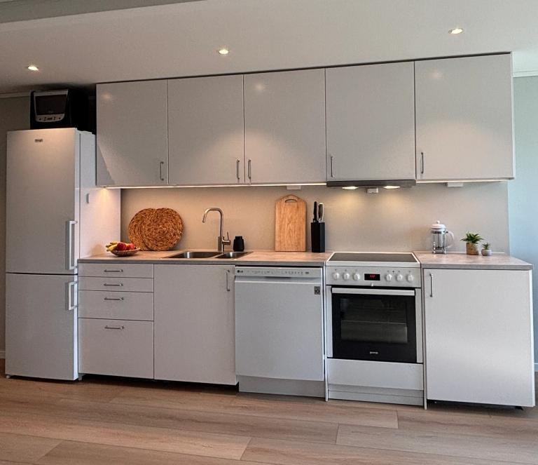 Moderne leilighet med god plass, fult møblert og med utstyrt kjøkken. Perfekt for par eller enslige. Nyoppusset i 2026 med helt nytt bad og kjøkken. Varmepumpe og varmefolie i stuen. Varmekabler på bad. Rolig og hyggelig gate og kort vei til fine turmuligheter og matbutikk. Egen parkeringsplass. Godt med lagringsplass, både på bad, soverom, kjøkken og et høyskap i stuen. Fin og solrik vestvendt uteplass med utemøbler.