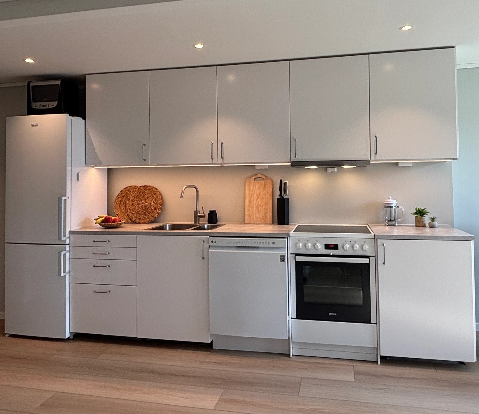 Veldig god 180 cm seng av merket Svane. Helt nytt kombikjøl/frys og vaskemaskin. Induksjonsovn og 60 cm oppvaskmaskin.
