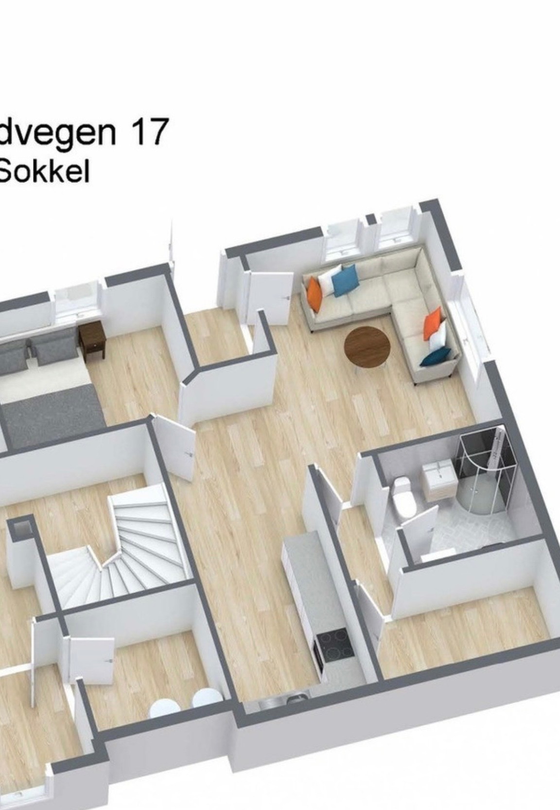 Leiligheten ligger i sokkel på enebolig i rolig strøk midt i klæbu sentrum. Leiligheten har soverom , stue, kjøkken , bad, gang , og bod.