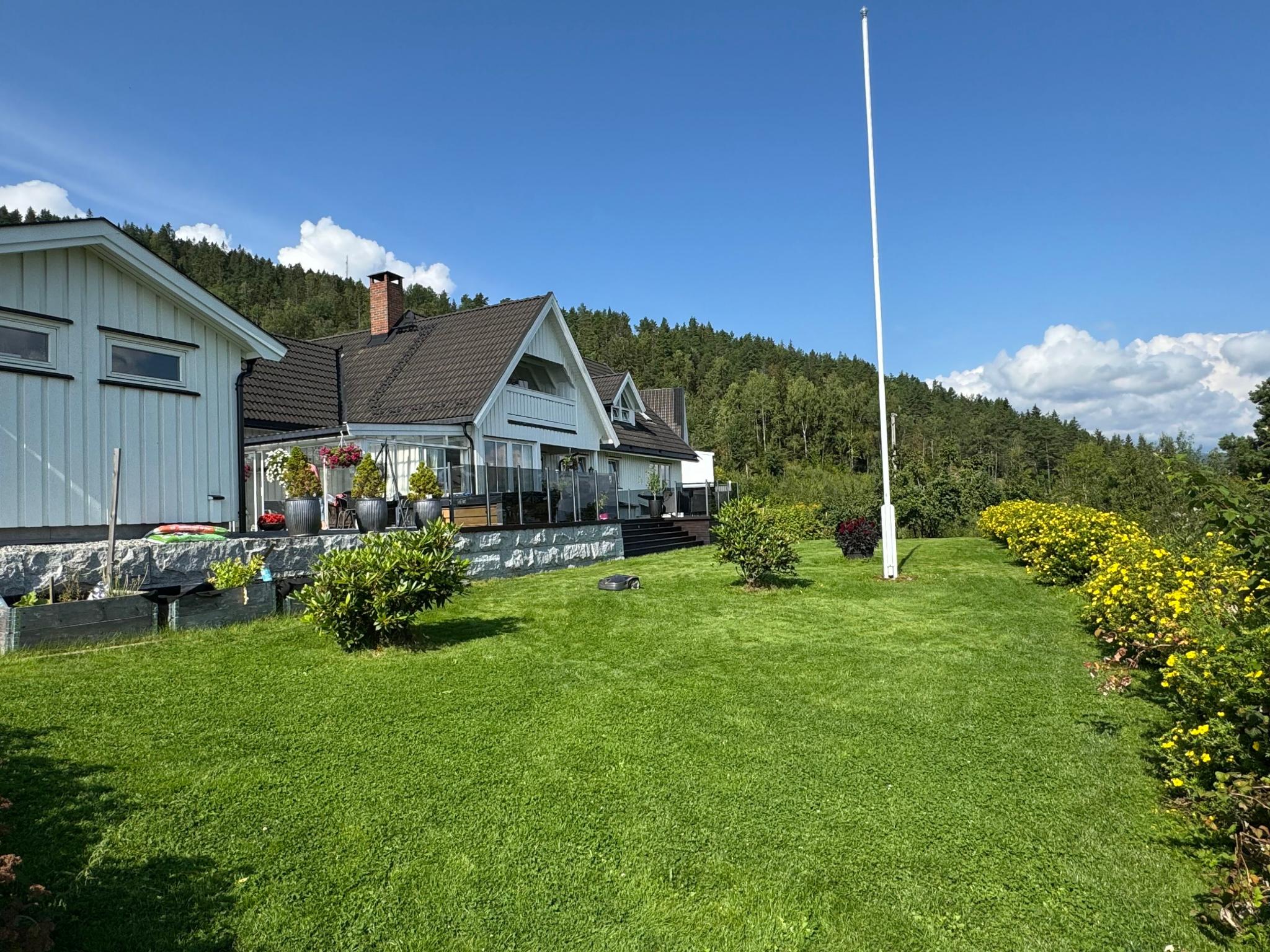Eiendommen ligger på en stor tomt uten innsyn, noe som gir privat atmosfære. Boligen ligger ved foten av Nordbykollen – et populært og flott turområde med gode tur- og rekreasjonsmuligheter rett utenfor døren.