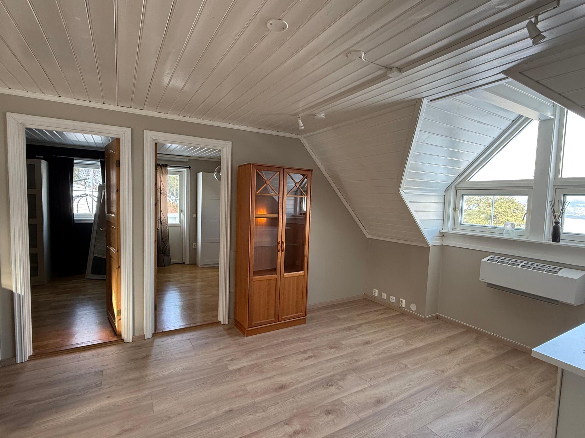 Boligen består av to soverom, stue med åpen kjøkkenløsning og flislagt bad med dusjkabinett og opplegg for vaskemaskin. Fra det ene soverommet er det utgang til egen terrasse med flott utsikt utover Drammensfjorden.