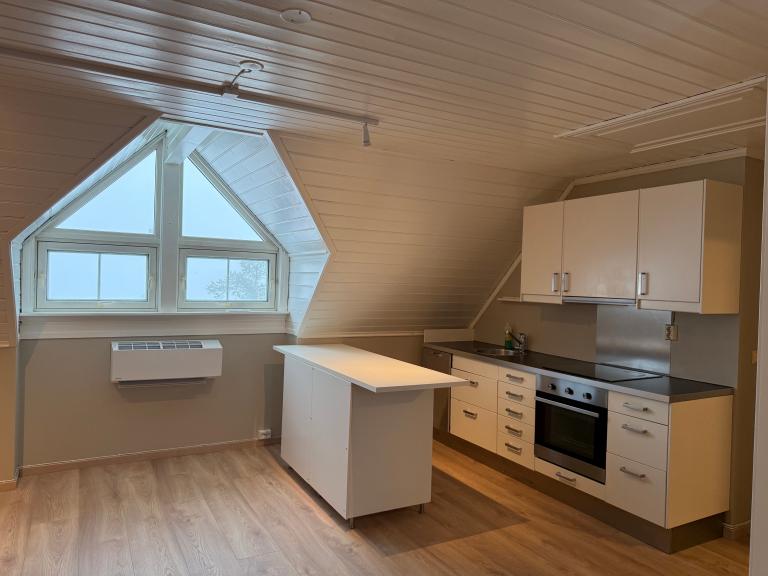 Lys og moderne 3-roms leilighet til leie i 2. etasje i enebolig. Leiligheten er nyoppusset og holder gjennomgående god standard.